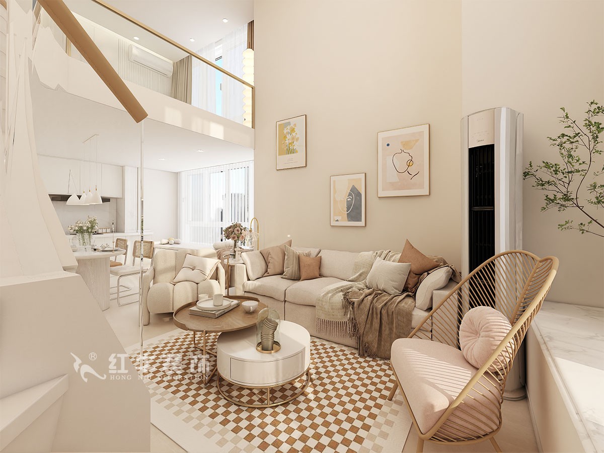 整體風(fēng)格簡約,米灰色和白色營造出溫馨的生活氣息,客廳做了挑空,臥室敞開式的處理,衛(wèi)生間用了玻璃隔斷,使整個(gè)公寓的空間得到了很好是釋放,不顯得壓抑。