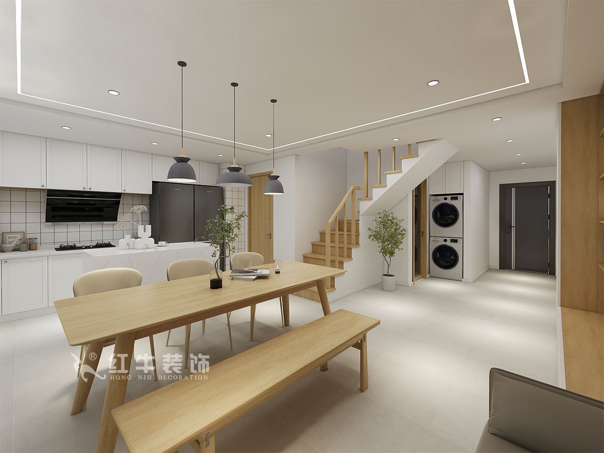買(mǎi)的學(xué)區(qū)房,兩個(gè)小孩,一男一女,二樓有窗子的采光只能隔出來(lái)兩個(gè)臥室,這樣就把兒童房做了一個(gè)套間,做了口袋門(mén),晚上睡覺(jué)保證兩個(gè)臥室的私密性。一樓做成整體空間,餐桌不單單是用餐的桌子,還可以解決孩子做作業(yè),喝茶等問(wèn)題。