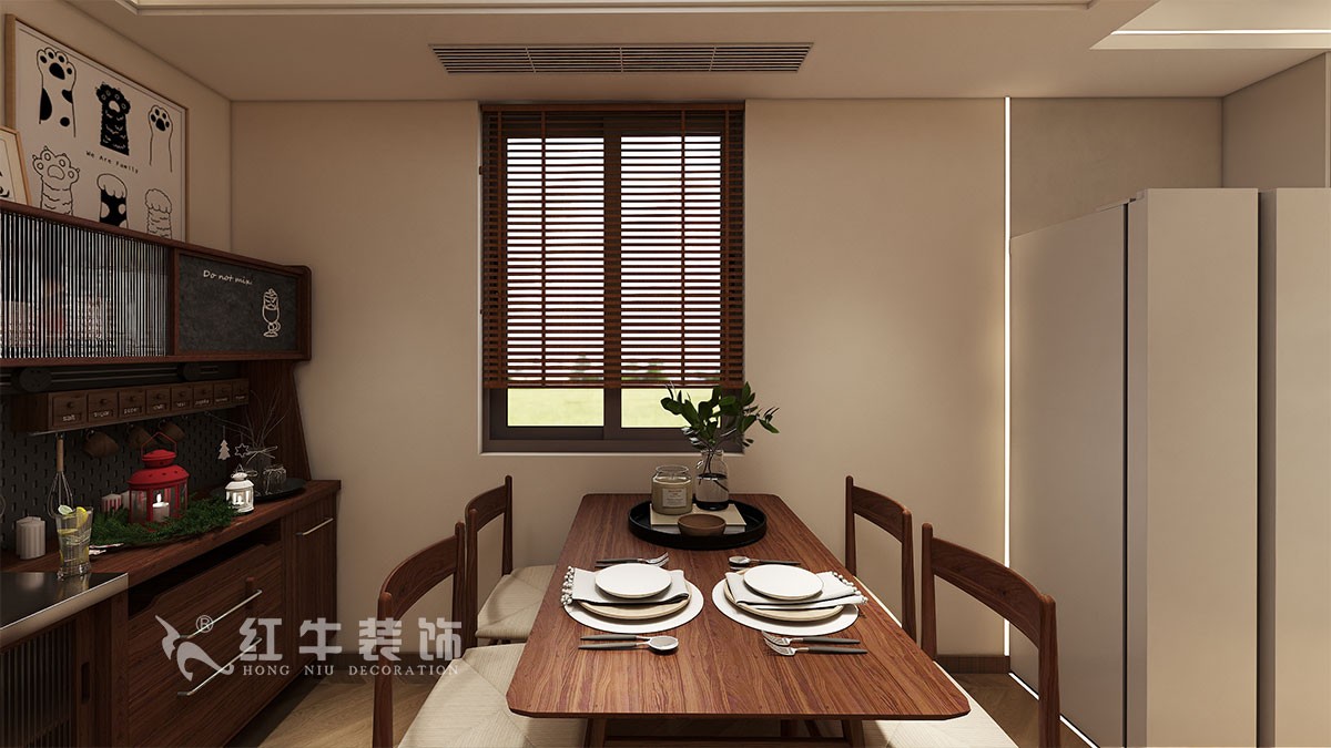 此案主要是四口之家居住裝修,在舒適度上要求比較高,臥室是整套房子中最私人也是最體現(xiàn)出溫馨休閑感的空間,在設(shè)計時體現(xiàn)出靜謐舒適的感覺,并且與其他空間明顯的區(qū)別。沒有設(shè)計沙發(fā),而是設(shè)計大的餐桌,又能當(dāng)書桌用,又能起到分割空間的作用。廚房窗戶比較大光線就能更好的進(jìn)到餐廳,衛(wèi)生間也能單獨一個區(qū)域。