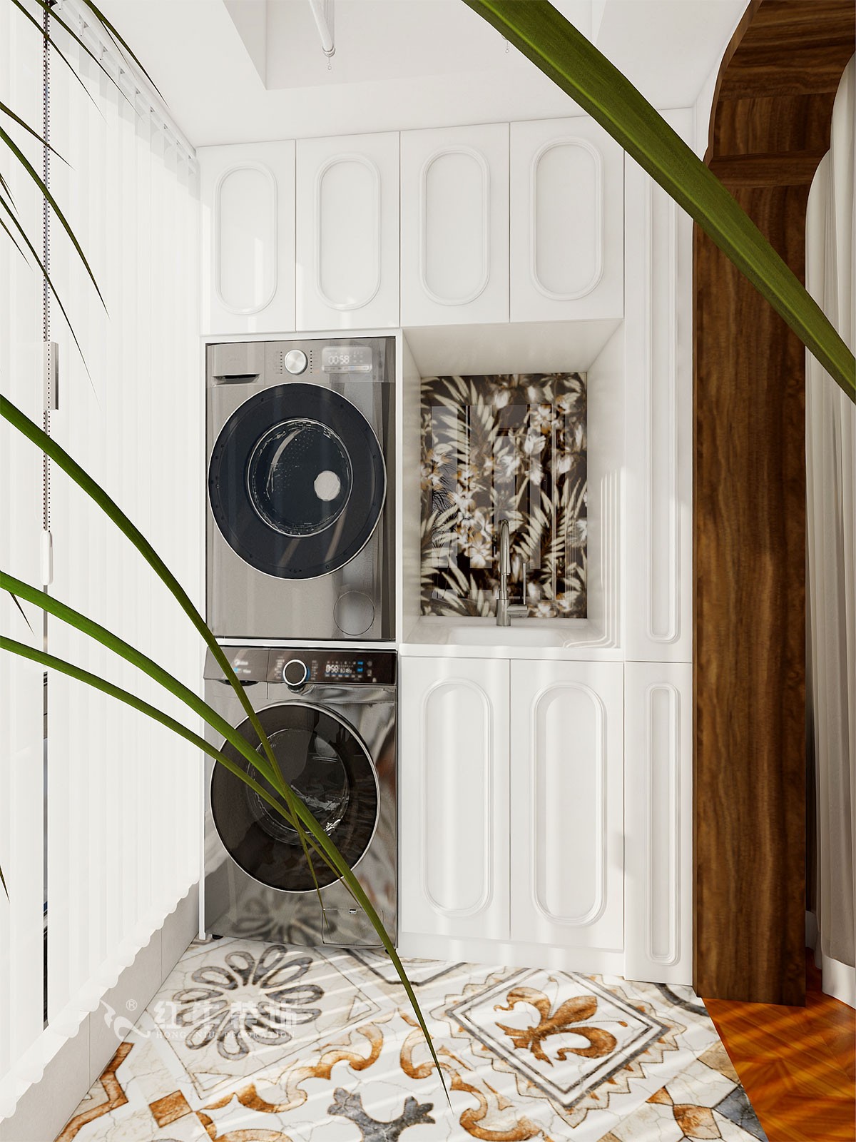 整體法式南洋復(fù)古風(fēng)格的設(shè)計,搭配上顯眼的綠色植物,讓整個空間呈現(xiàn)出一種生機(jī)勃勃的自然美。