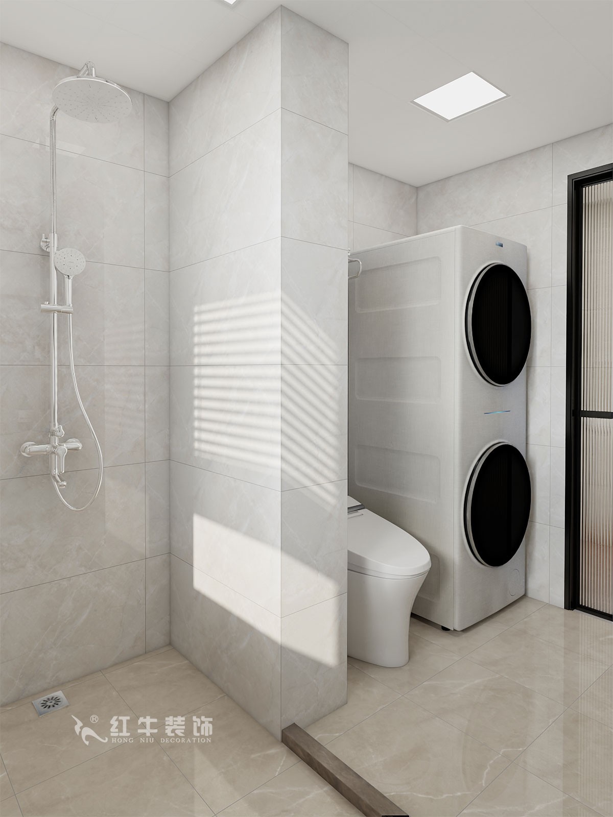 衛(wèi)生間原先門洞對著臥室門,客戶忌諱,進(jìn)行了調(diào)整,做成了餐邊柜,同時(shí)衛(wèi)生間做成了干濕分開。