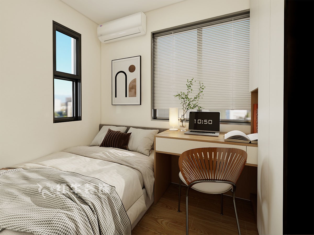 年輕夫妻居住,在滿足居住條件的基礎上,對房體結構做了局部調整,做到了各個空間的最大化利用,滿足了客戶功能性的需求。