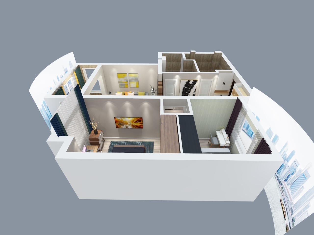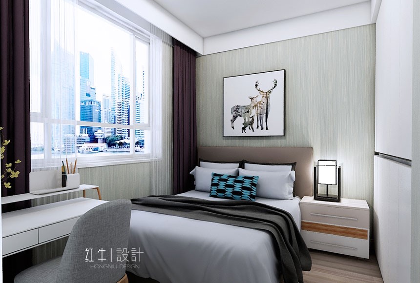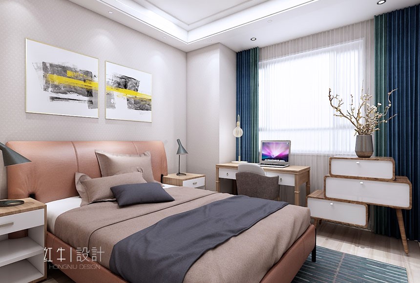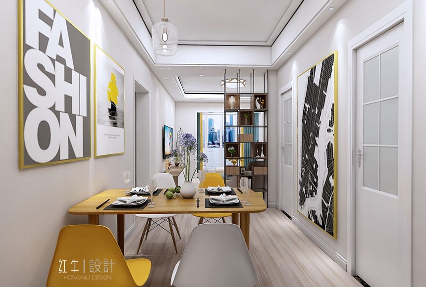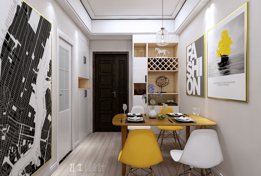現(xiàn)代人的生活習(xí)性,喜歡簡單明了不拖泥帶水的東西,都市的快節(jié)奏,讓人們希望在房子里找到家的溫馨。客廳淺灰色的墻面讓人有安靜下來的體驗(yàn),木色的家具,加以搭配撞色的門板,不會有原始的呆板。木色的家具配以時(shí)尚的撞色,大膽又不失規(guī)矩,甚是合適。大量的留白,使空間更加時(shí)尚和安靜。房間木色的拼色和皮質(zhì)的碰撞,配以稍深的墻紙,溫暖又清新,讓主人能在疲憊一天的工作中,舒服的進(jìn)入夢鄉(xiāng)。次臥朝北,運(yùn)用淺綠色的墻面,將空間帶進(jìn)自然,