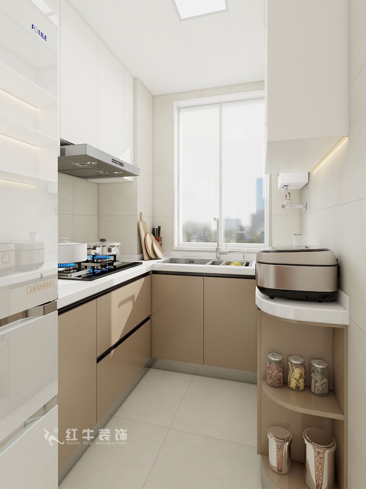 此戶型南北通透,在戶型改造上面并沒(méi)有太大的必要,于是我們站在客戶的角度為客戶著想,將廚房的房門(mén)朝向進(jìn)行了改動(dòng),讓房間更加方便的同時(shí)使得居住的舒適度也有所提升。