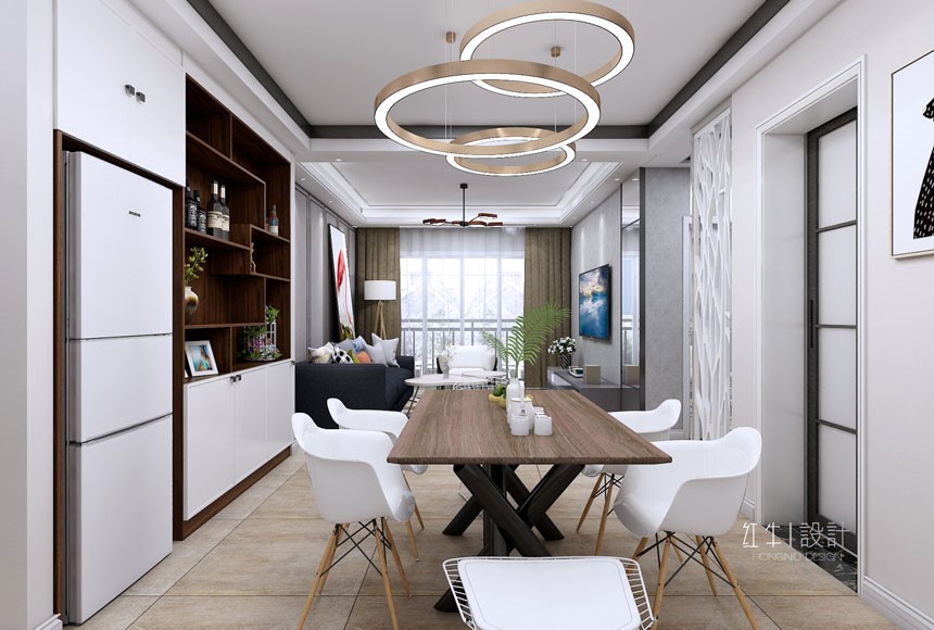 此案滿足年輕人的激情,充滿個(gè)性,材質(zhì),色調(diào)的碰撞,打造舒適,又不古板的氛圍。木質(zhì)與白色的搭配,讓柜子不那么簡單,提升整個(gè)空間的層次。