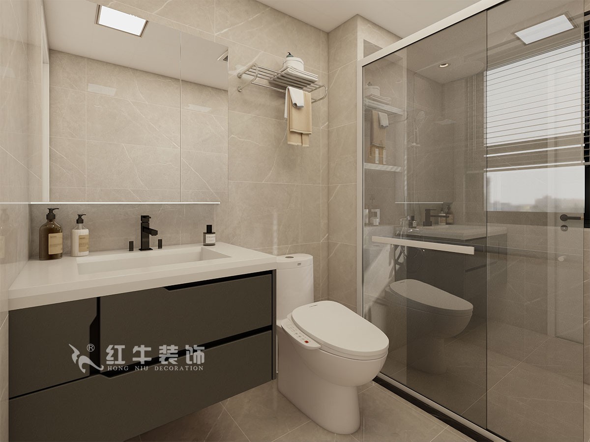 衛(wèi)生間簡潔實(shí)用的干濕分離設(shè)計(jì),洗手臺盆、鏡柜、浴室柜,為使用者提供了一個精致、優(yōu)雅的洗浴體驗(yàn)。