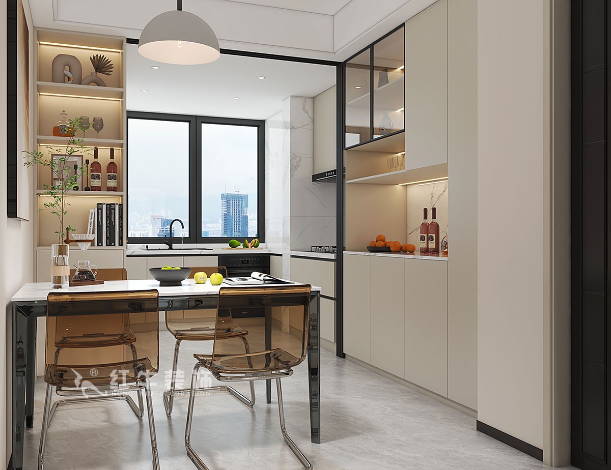 客餐廳空間很規(guī)整,通過細(xì)節(jié)的處理打造輕松舒適的現(xiàn)代風(fēng)居家環(huán)境。