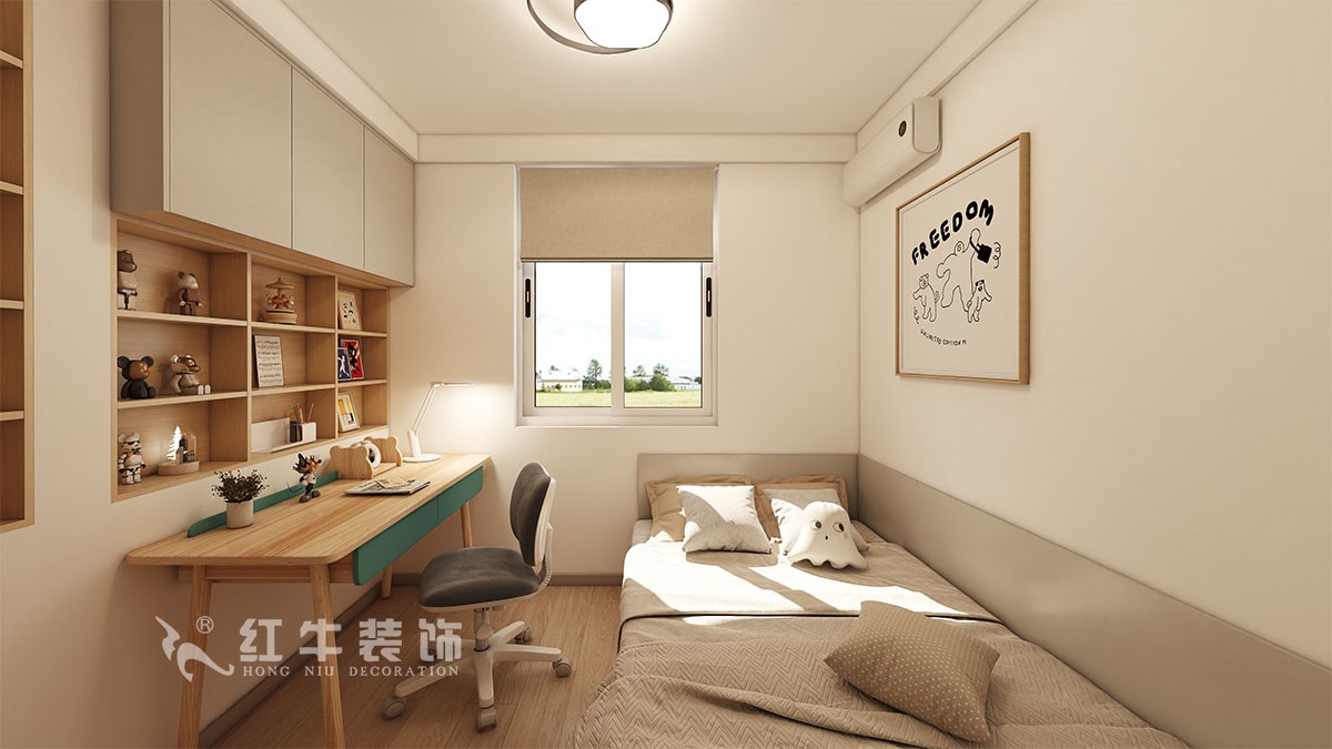 客戶是一對(duì)小夫妻帶個(gè)小孩和老人居住,原始戶型比較方正,功能分區(qū)合理。衛(wèi)生間做干濕分區(qū),這樣使用更方便。兒童房要具備休息和學(xué)習(xí)功能,盡量留空作為小朋友的活動(dòng)空間。整體裝修簡(jiǎn)潔明快,沒有過多的裝飾。