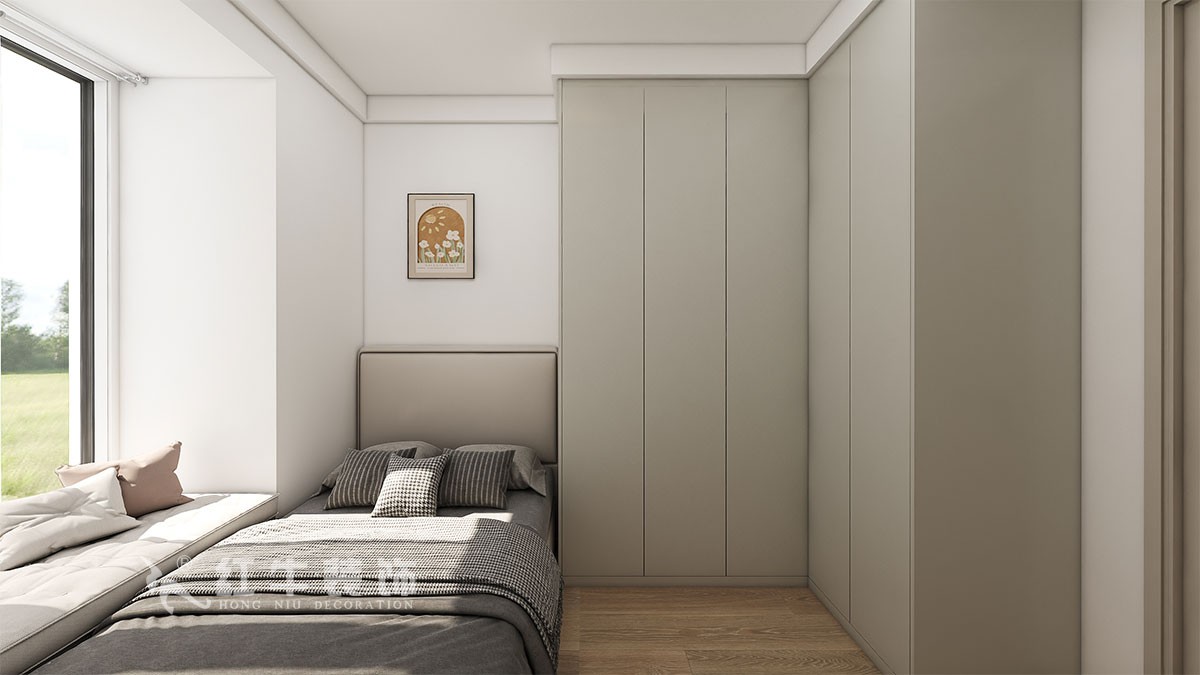 業(yè)主是一個阿姨,作為養(yǎng)老用的,要求儲物空間盡可能的多,進門利用廚房那邊墻,利用廚房的空間做了一組鞋柜,滿足入戶換鞋的基本需求,衛(wèi)生間進行了墻體拆除,不做干濕分離,這樣空間更加合理,考慮阿姨年紀大了,更方便安全。北臥改成了衣帽間,衣帽柜梳妝臺書柜一體化設計。餐廳區(qū)域做了餐邊柜+嵌入式冰箱設計,不僅滿足了儲物的需求,同時使得空間更加豐滿、大氣、時尚。
