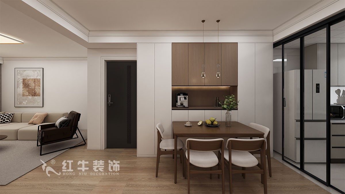 餐廳說明:餐邊柜擴充了廚房儲物的不足,也提升了適合家庭的生活質量。