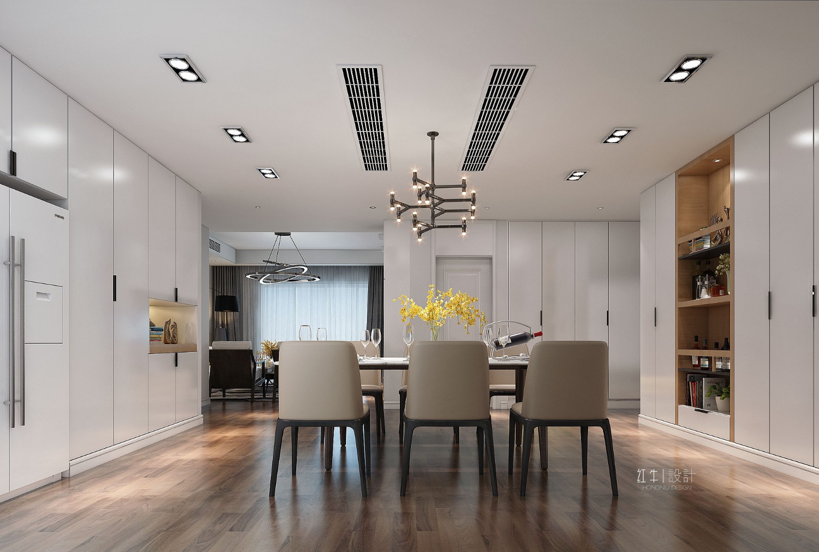 此房型規(guī)整,南北通透,最大的問題就是如何利用餐廳的那個(gè)區(qū)域,大部分業(yè)主都會(huì)把他做成房間或者書房,當(dāng)然這個(gè)客戶我們做過很多的方案,不斷的溝通,最后把原來(lái)敞開的地方全部做成了餐廳,一個(gè)大的長(zhǎng)條桌,增大了整個(gè)餐廳的既視感,大氣而簡(jiǎn)單,體現(xiàn)了港式得商務(wù)風(fēng)??蛻魧?duì)收納空間的要求比較高,包括客廳的背景墻也采用了一些柜子的組合來(lái)完成整面墻的設(shè)計(jì),能動(dòng)的墻體幾乎都有改動(dòng),大大的增加了每個(gè)空間的利用率。