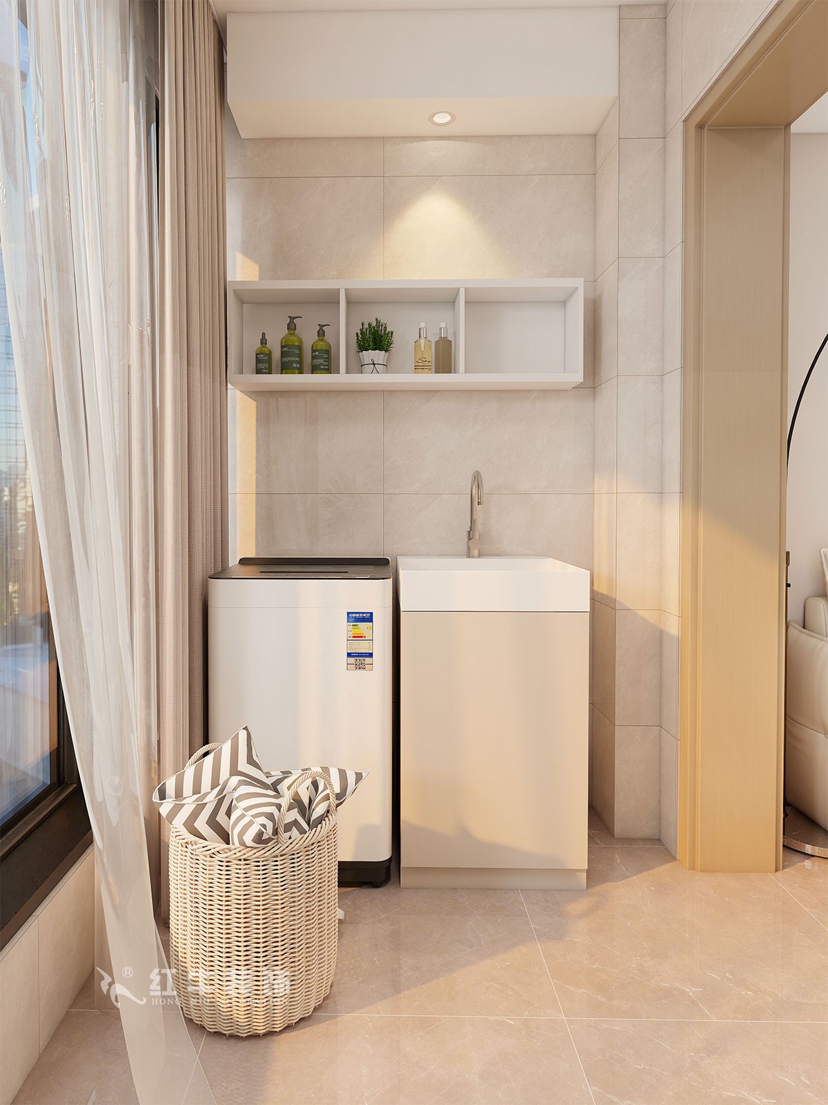 主材品牌:L&D瓷磚、開來木門、開來櫥柜、法恩莎潔具、奧普吊頂