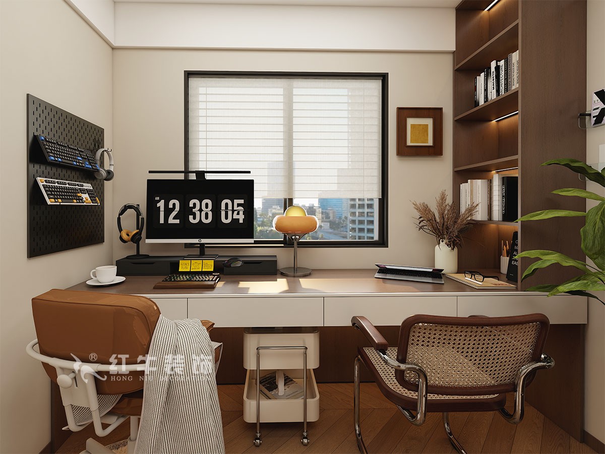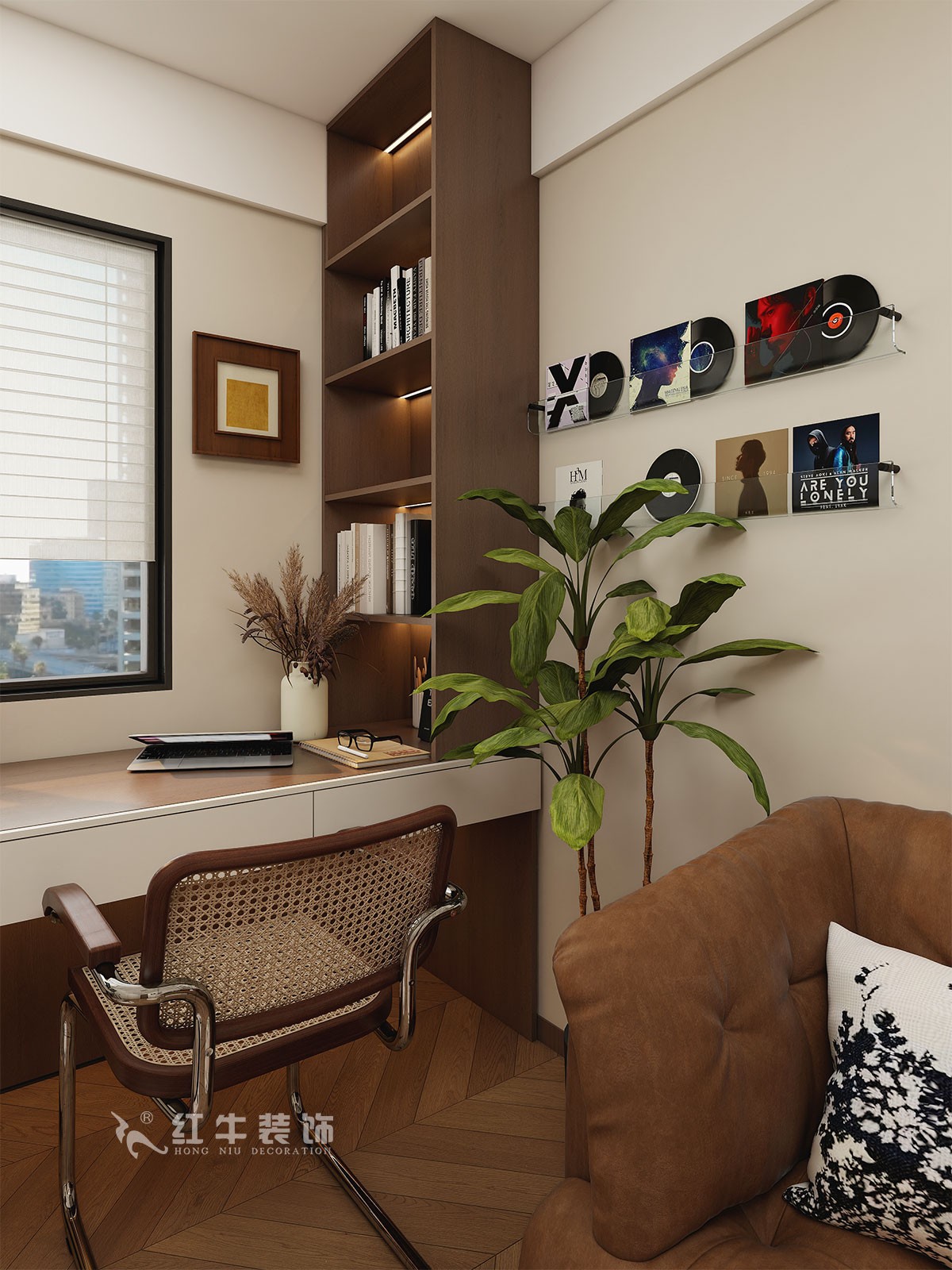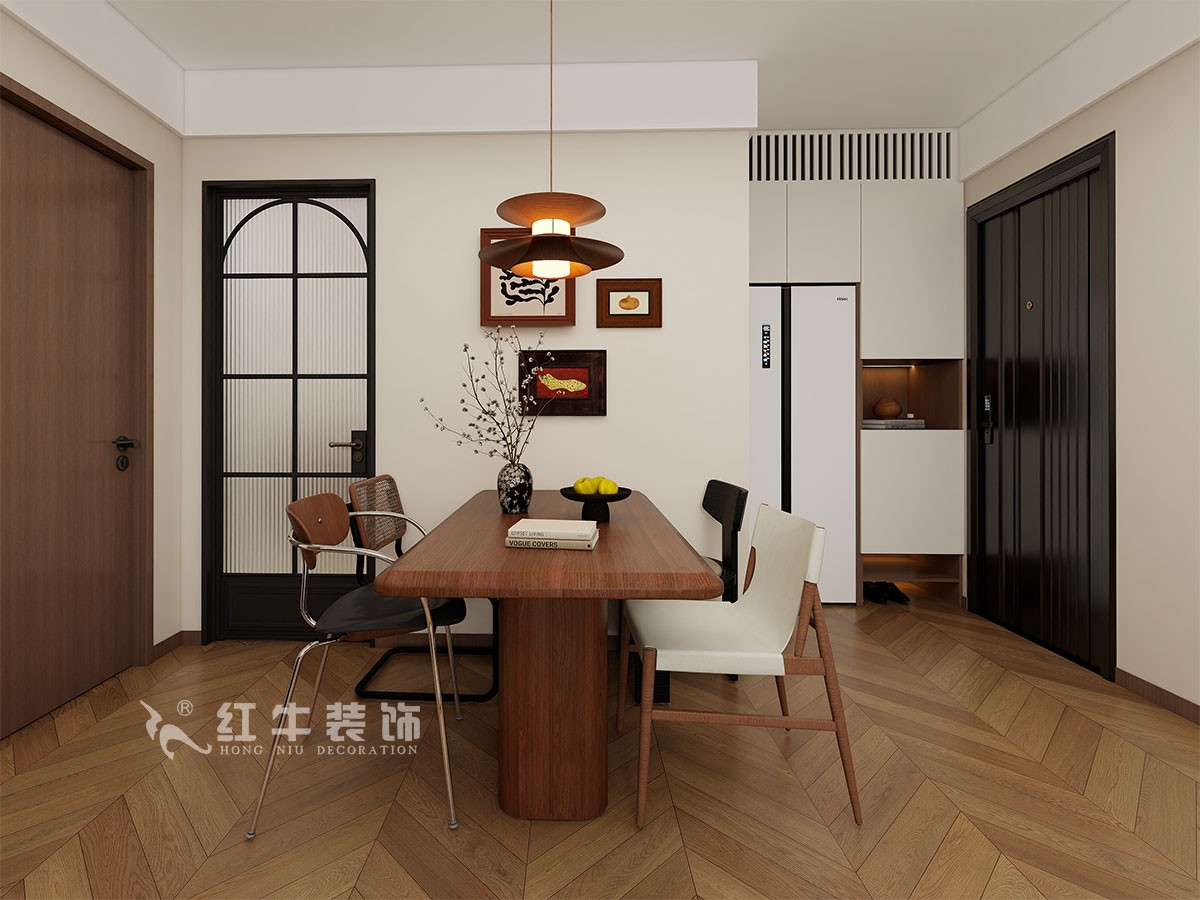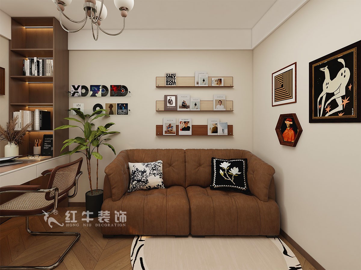 色彩搭配:以暖色調(diào)為主,墻面采用米色、淺咖等柔和色彩,搭配深木色家具,局部點(diǎn)綴姜黃、酒紅等復(fù)古色調(diào),營造沉穩(wěn)氛圍。