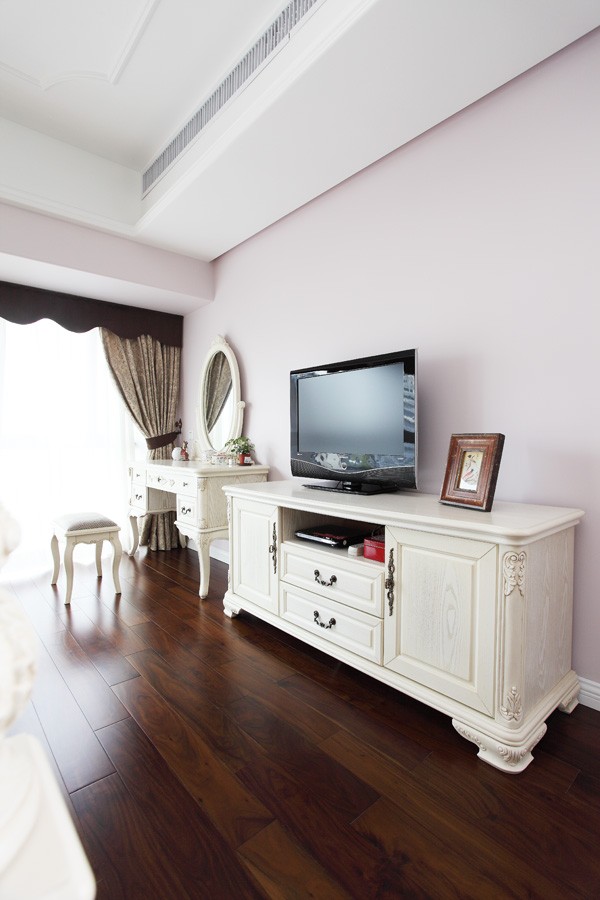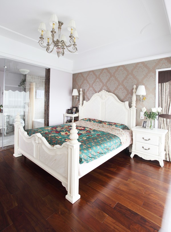 臥室里面也是用歐式線條跟浮雕地板達(dá)到歐式的格調(diào)。