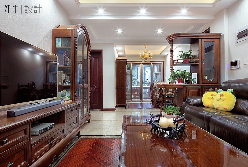 3.方案整體以深色家具為主,整體以小美式為主。后期用軟裝,家具整體搭配,制造出了一個(gè)舒適溫馨的小家。