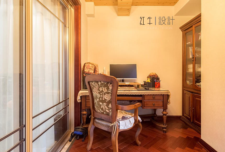 2.業(yè)主平時(shí)需要看書,需要一個(gè)獨(dú)立的書房,所以利用了客廳陽(yáng)臺(tái)的區(qū)域,改成了一個(gè)書房,同時(shí)也增加了儲(chǔ)物空間。