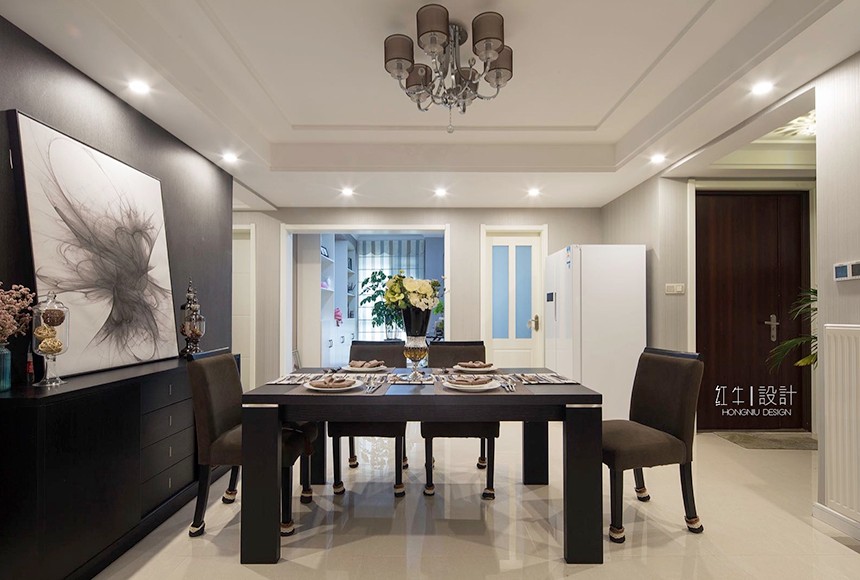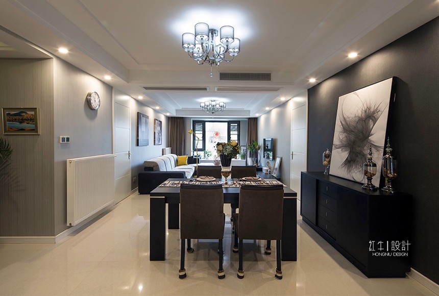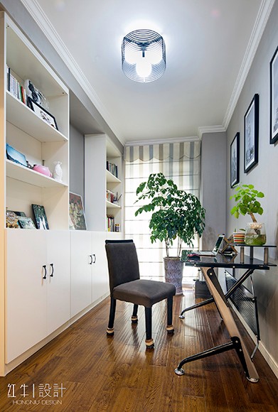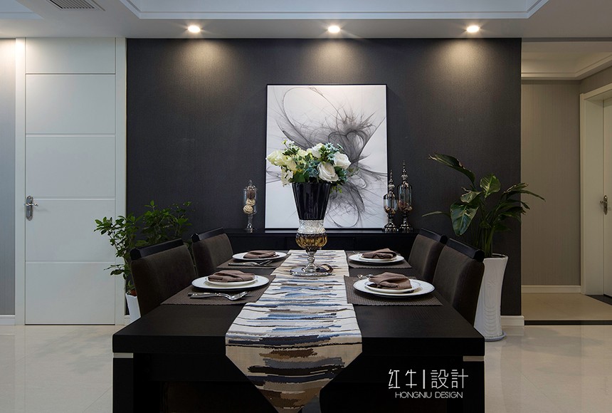 “寧動”設(shè)計主題即為“寧靜中的舞動”來源于客戶對裝修簡約而不簡單的要求,營造一種空間氛圍,體現(xiàn)主人公的氣質(zhì)與生活品質(zhì)。設(shè)計氛圍定位時,避免了過于現(xiàn)代夸張的居家風(fēng)格,而從簡約之美的表達(dá)方式和質(zhì)樸入新的自然內(nèi)在著筆。選擇了簡潔的手法和明亮的色調(diào),同時采用了深淺的對比,陳設(shè)軟裝上融入了現(xiàn)代簡約元素,營造出富有設(shè)計感的空間,更具有了深厚的文化內(nèi)涵。金屬飾品的陪襯,為空間營造時尚摩登的韻味。整體基調(diào)以灰色與深色為主,又無形中演繹出一種精英人群生活的品質(zhì)感。在經(jīng)過很長一段后仍然具有耐看的感覺。書房內(nèi)巨型的白色抽象波紋窗簾吸引來賓視線,在這里舒適、黑白分明的創(chuàng)建了清晰的視覺框架,營造出非凡的生活品味??臻g中的藝術(shù)性是感覺的提升,同時也是空間氣質(zhì)的表達(dá),那是一種韻味,為空間增加一分耐人尋味的內(nèi)涵和附加價值。這不僅僅是對藝術(shù)品的追求,更是對空間藝術(shù)性的把控。