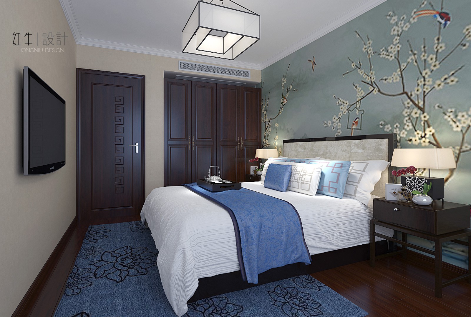 大面積的藍色賦予了整體空間莊重與優(yōu)雅,色彩濃厚而成熟,增加了空間的溫暖感與穩(wěn)重感,體現(xiàn)中式文化深沉、厚重的底蘊。