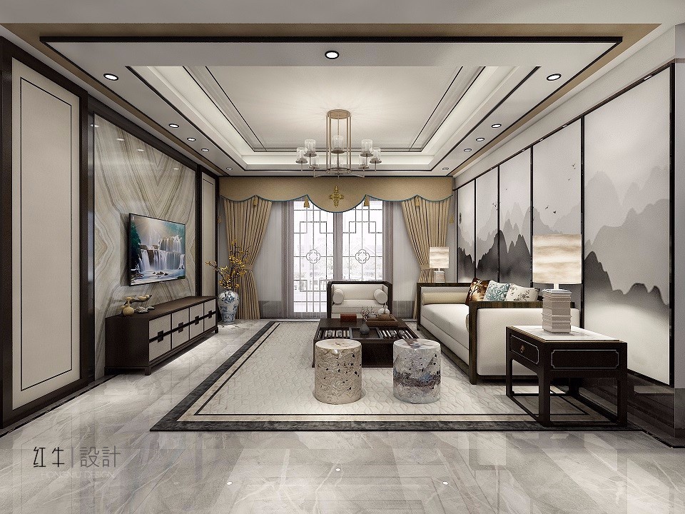 本案應業(yè)主要求做了一個新中式風格,在設計思考上,多采用對稱布局方式,格調高雅,造型簡樸優(yōu)美,色彩濃重二成熟。其實新中式的定義比較廣泛本案我在形態(tài)和色彩的運用上主要以表達清雅含蓄,端莊豐華的東方式精神境界的追求。