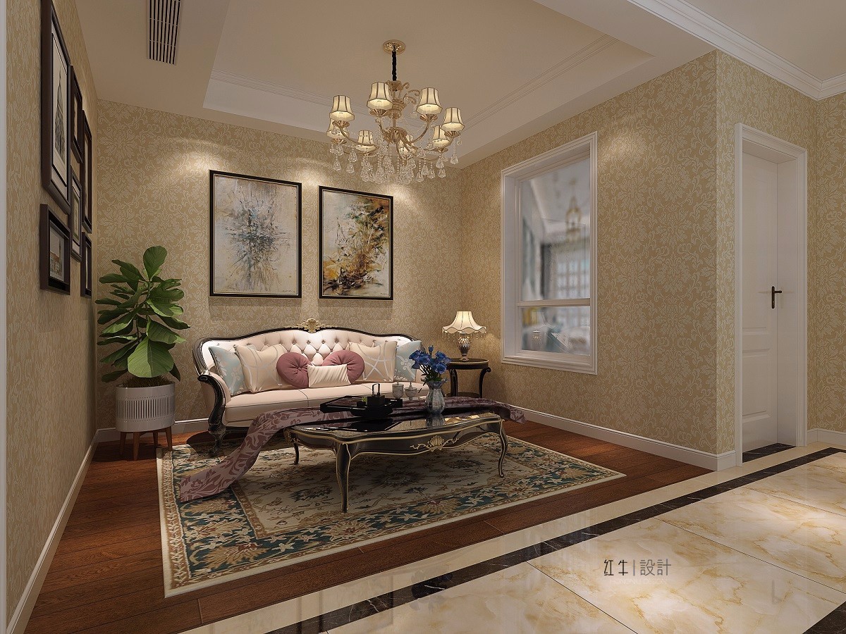 二樓的小客廳延續(xù)了一樓客廳的典雅風格,小小的空間通過地毯、裝飾畫、吊燈與歐式沙發(fā)的搭配變得華貴優(yōu)雅。