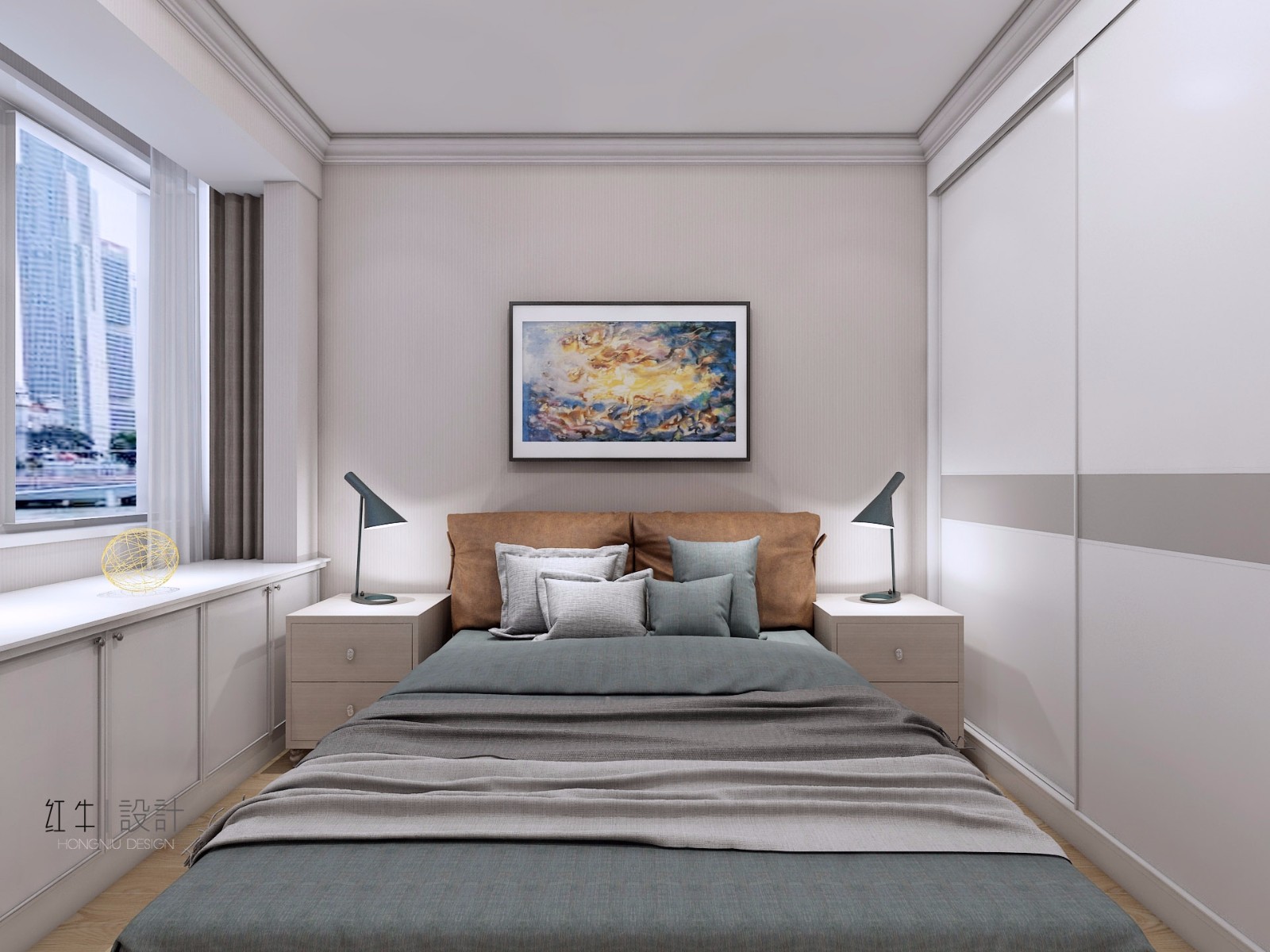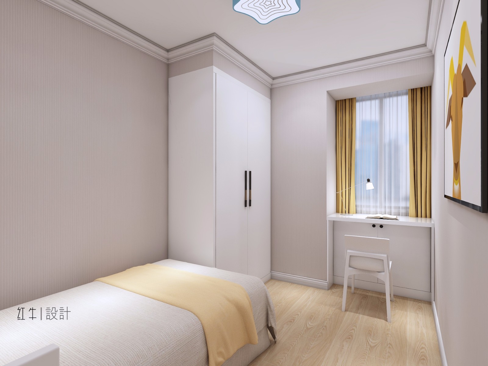 次臥以白色為主色調,并選用淺色地板,使得整個空間顯得整潔明亮。