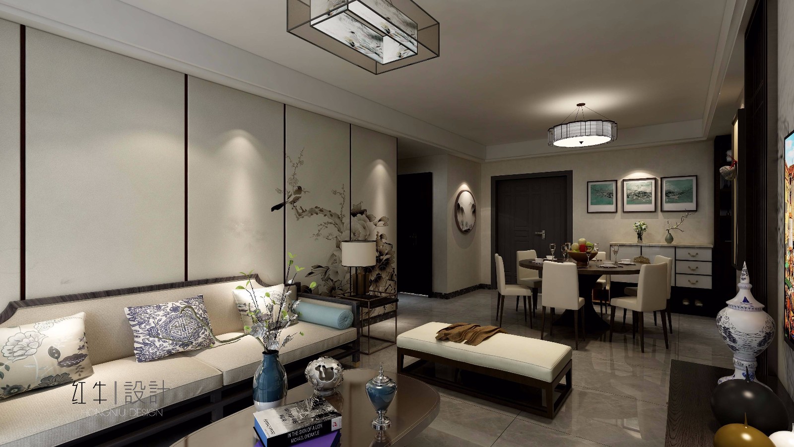 本案是一對中年夫婦,客戶品質(zhì)很高,子女不在身邊,偏愛新中式的風(fēng)格。三房兩廳,在平面布局上,客餐廳采光通風(fēng)效果極佳,但是客臥的空間非常不規(guī)整,而且狹長,利用率不高,儲物間的空間又過于狹小。經(jīng)過改造,把次臥的墻向房間偏移,擴大了客臥和儲物間的面積,使得客臥可以正常的放下一張床,同時在客臥做上移門,做成客臥和書房兩個空間的套間,每個空間都變得規(guī)整,提高了空間的利用率。在色彩方面,采用的都是淺灰系和米色系的顏色。電視背景墻用中式的花格和瓷磚相互搭配,沙發(fā)背景采用花鳥圖案的硬包使得整個空間莊嚴(yán)又不顯得沉悶。體現(xiàn)了中式風(fēng)格“進門有景,移步換景”的特點。軟裝上在利用亮色裝飾物做點綴,使得空間更有活力。