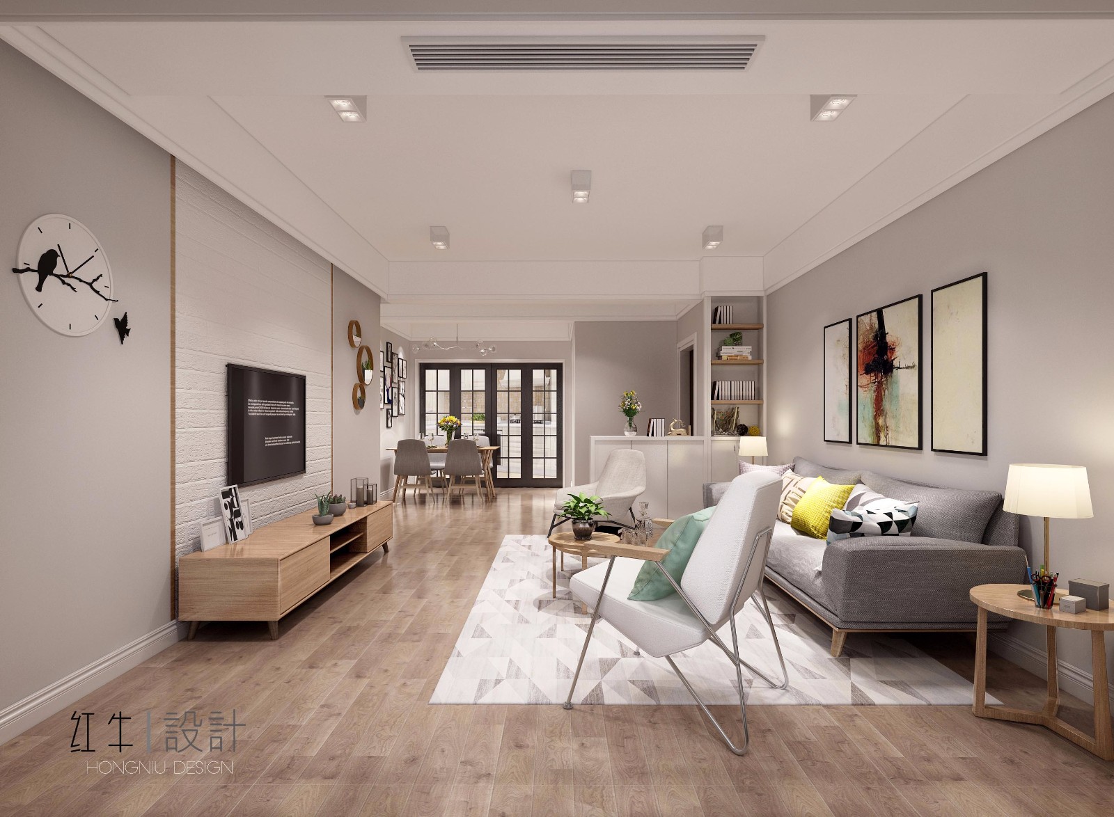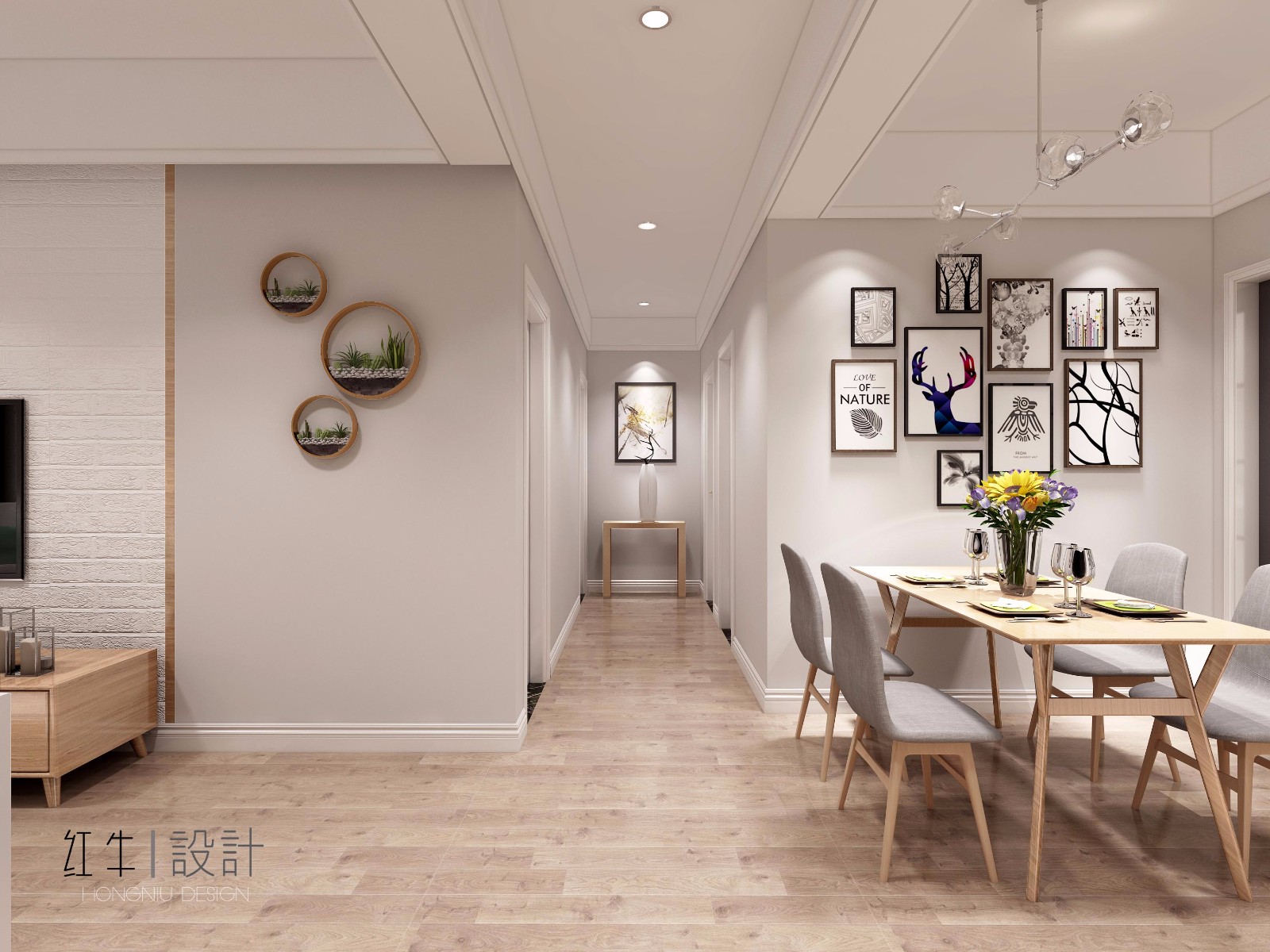 本戶型基本保留了原始結(jié)構(gòu)墻體,此案設(shè)計(jì)采用了北歐風(fēng)格,首先進(jìn)行合理的功能區(qū)域劃分,在滿足儲物需求的同時,要讓每個空間都能通風(fēng)并采光。在設(shè)計(jì)的時候,居室色彩主調(diào)以灰色,營造柔和、優(yōu)雅的氣氛,家具以淺木色為主,搭配精致的水晶吊燈,營造出浪漫的感。