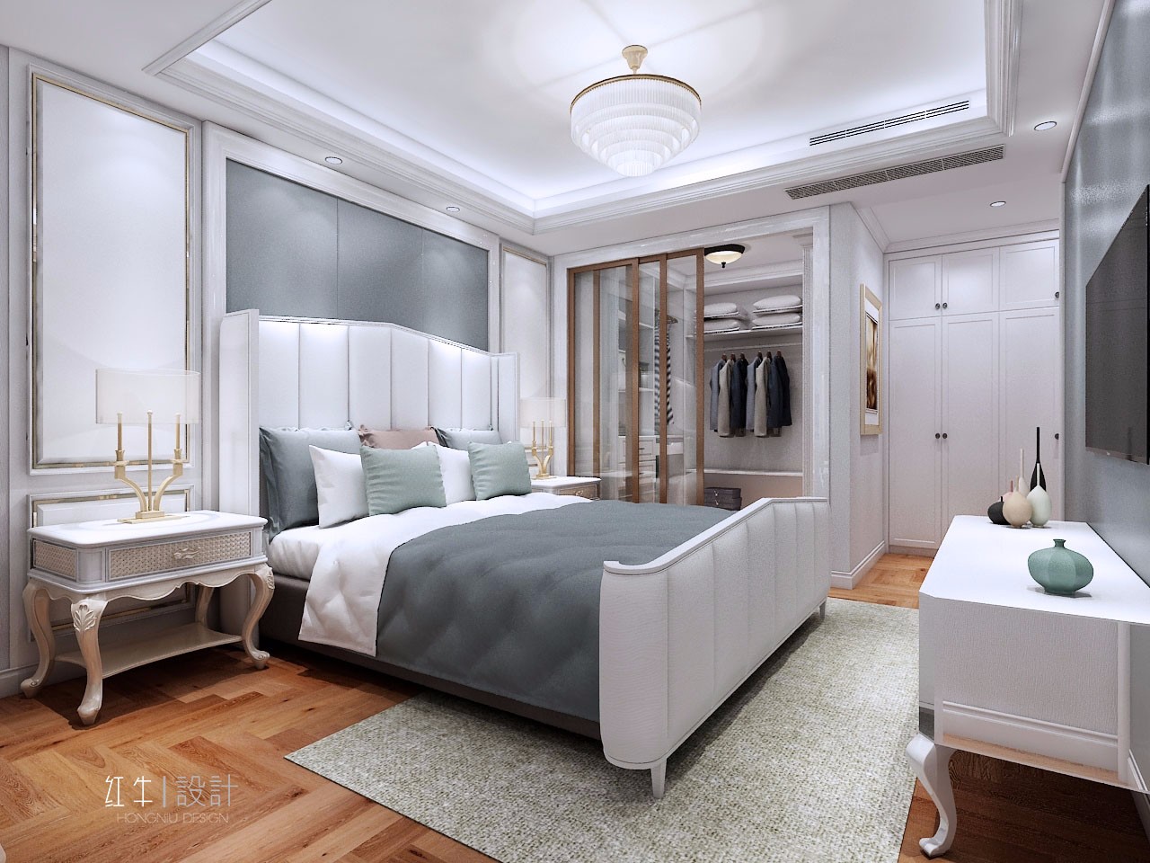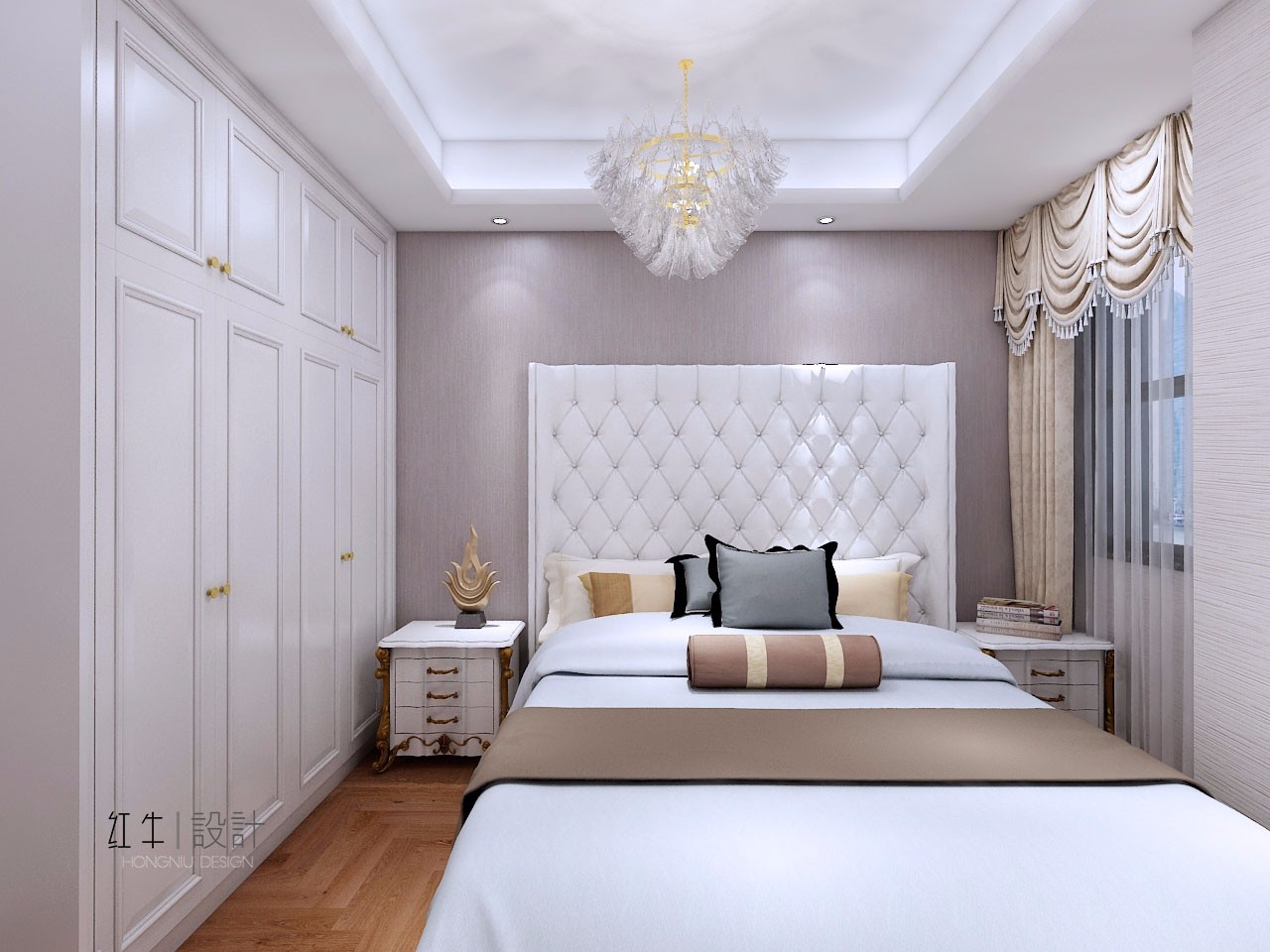 床頭柜、電視柜等家具帶有法式風(fēng)情,擁有典雅的造型與細膩的線條感,極具浪漫氣息。