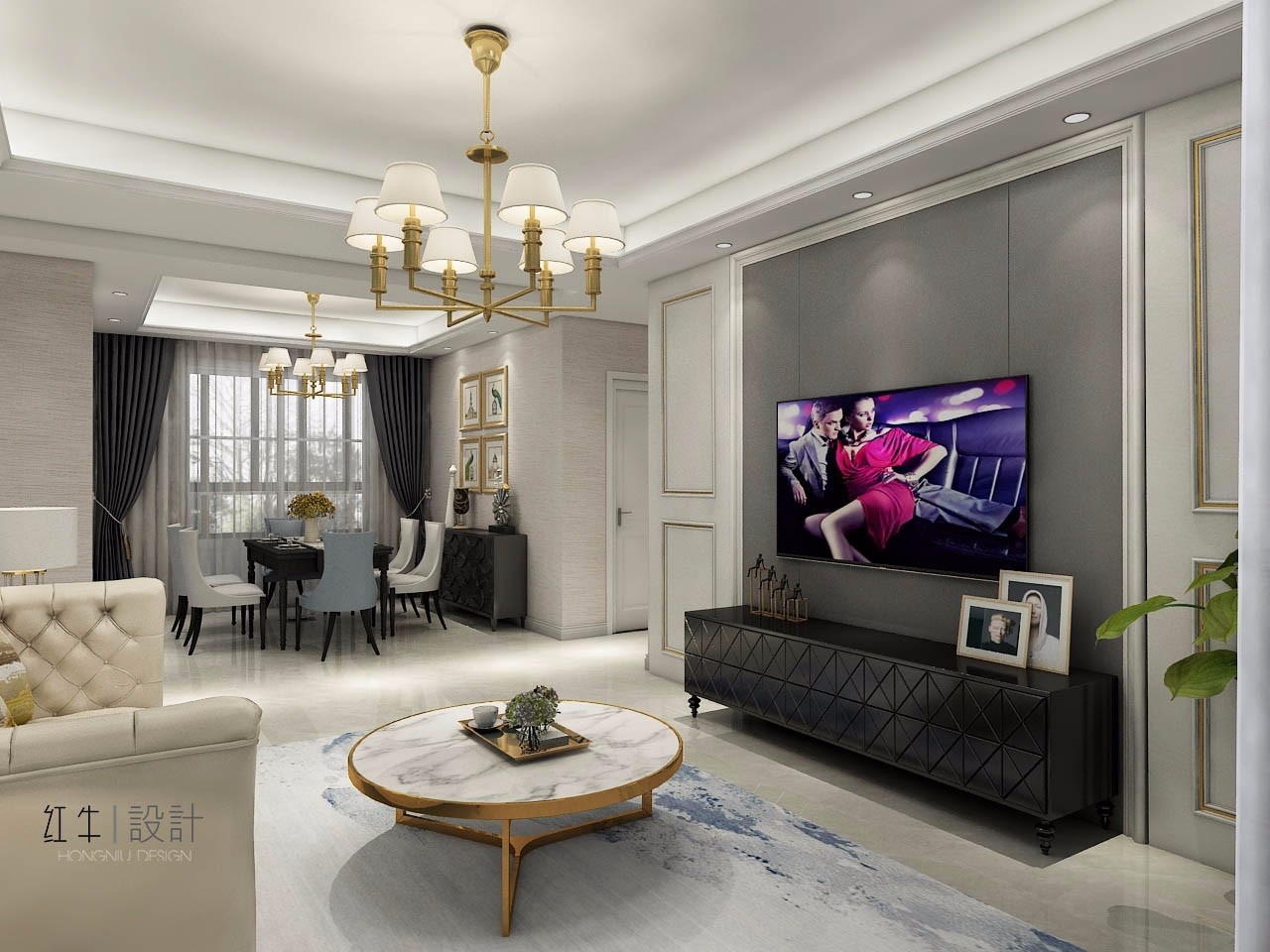 美式的皮質(zhì)沙發(fā),美式輕奢風(fēng)的金屬吊燈,使整體空間帶有簡(jiǎn)約又不失華麗的設(shè)計(jì)感。