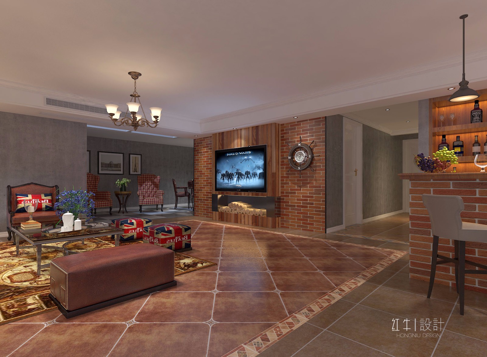 1、負一層業(yè)主是作為活動室和娛樂空間來考慮的,裝修風格定義為鄉(xiāng)村美式。后期把地面下挖40公分和頂面的保溫層拆除,整個層高達到2.35米;格局分布為(吧臺,活動場所,儲藏室,設備間,棋牌室和衛(wèi)生間)在室內(nèi)采用了天然木,毛石等材質(zhì)比較質(zhì)樸的紋理,打造出自然風格,力求表現(xiàn)休閑,舒適,簡樸,高雅自然的田園生活情趣。