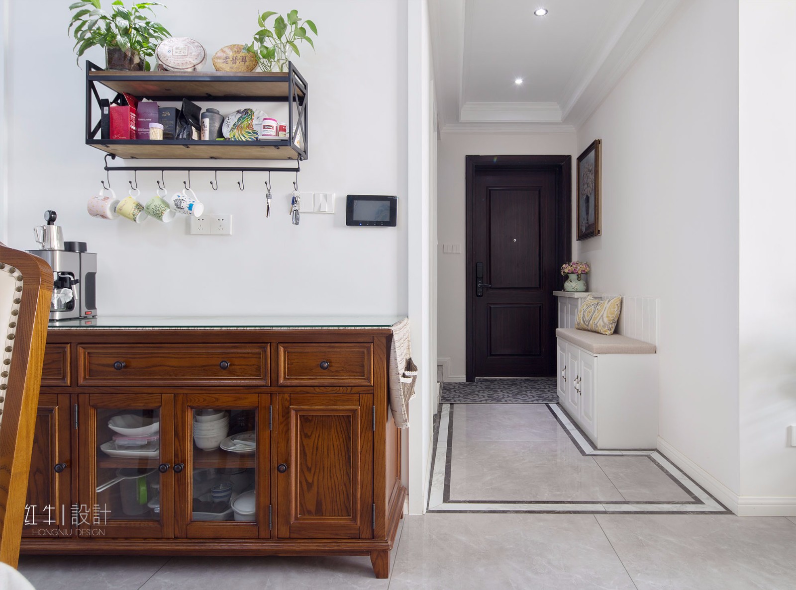餐邊柜的風(fēng)格與餐桌相近,所以非常和諧,用于收納碗碟,電器等物品,非常實(shí)用。