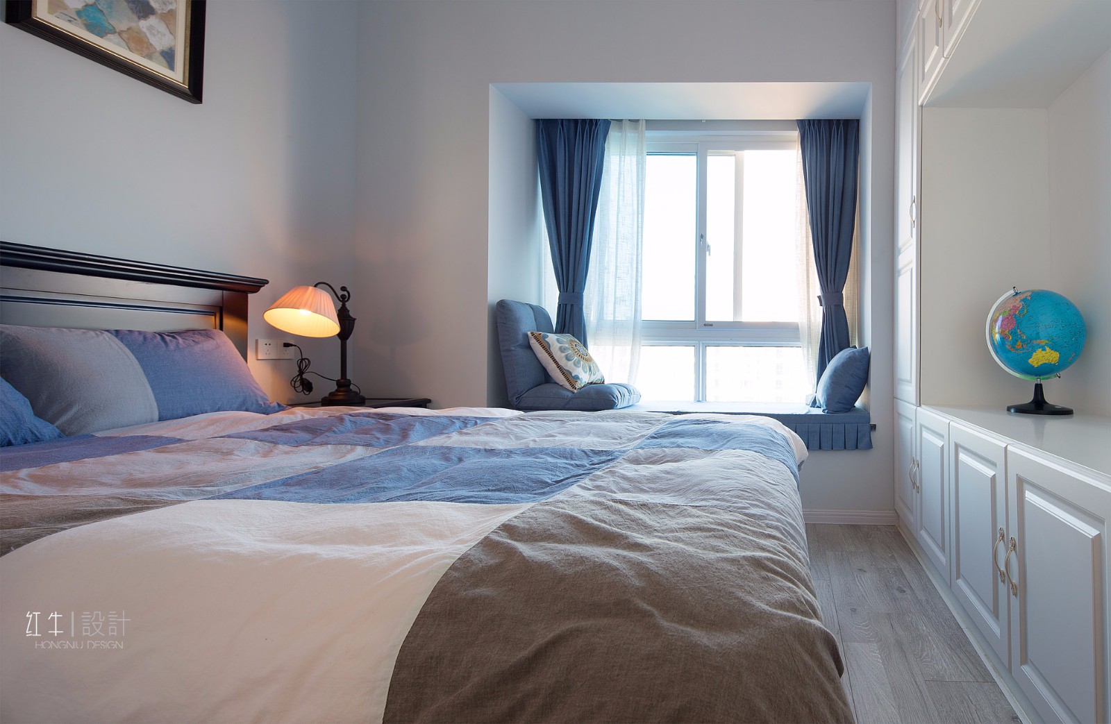 飄窗也進(jìn)行了布置,加上墊子、靠枕,令臥室增色不少。