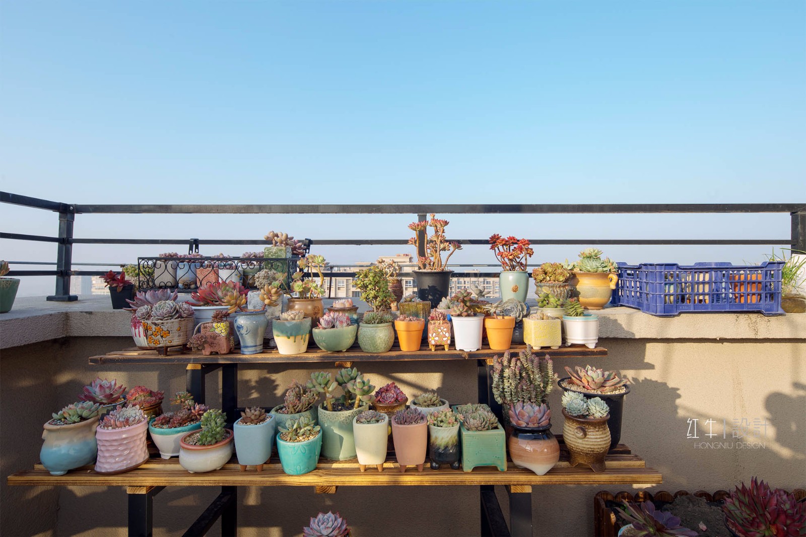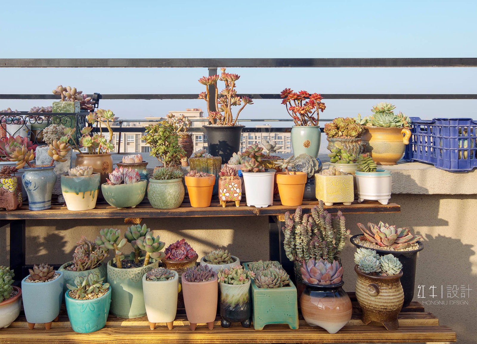 本案中,露臺(tái)的一角,放置了各式各樣的多肉植物,就像一個(gè)小小花園。