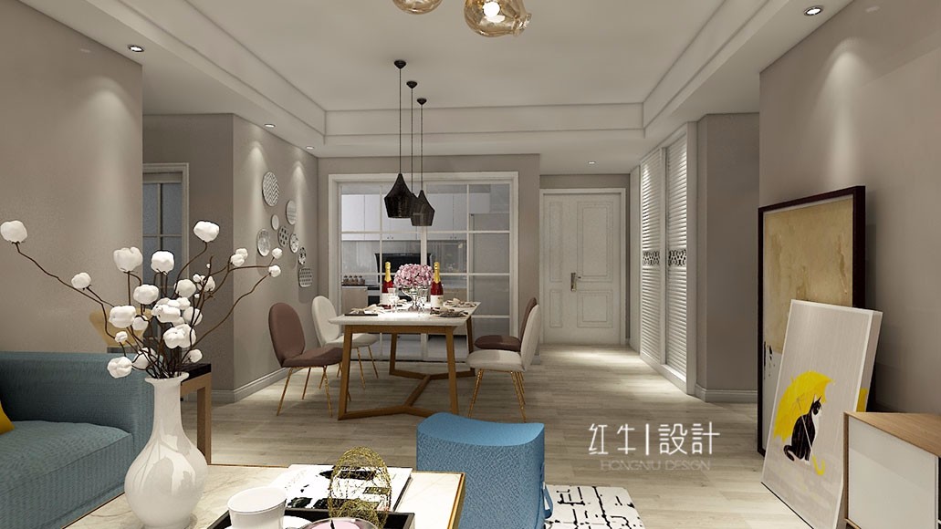 本案的設(shè)計(jì)風(fēng)格為北歐風(fēng)格,以象牙白為主色調(diào),以淺色為主深色為輔。營造清新、溫馨浪漫的氛圍。