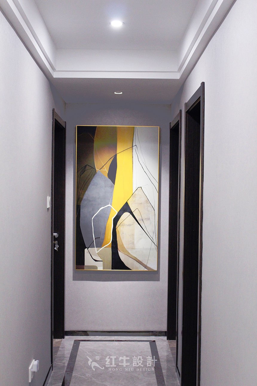 走廊面臨三面墻,如果只有清一色的房門,難免會顯得空洞無趣,這時掛上一幅裝飾畫,就可以體現(xiàn)主人的審美情趣和品位檔次,具有很強(qiáng)的感染力。