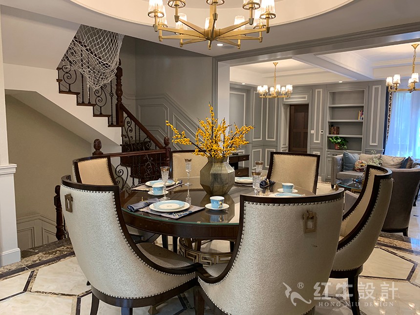 本案的設(shè)計(jì)從簡單到復(fù)雜、從整體到局部,精雕細(xì)琢、鑲花刻銀,都給人一絲不茍的印象。一方面保留了材質(zhì)、色彩的自然風(fēng)格,讓人感受到傳統(tǒng)的歷史痕跡與渾厚的文化底蘊(yùn)。同時(shí)又摒棄了過于復(fù)雜的肌理和裝飾,簡化了線條。將懷舊的浪漫情懷與現(xiàn)代人對生活的需求相結(jié)合,兼具華貴典雅與時(shí)尚現(xiàn)代。