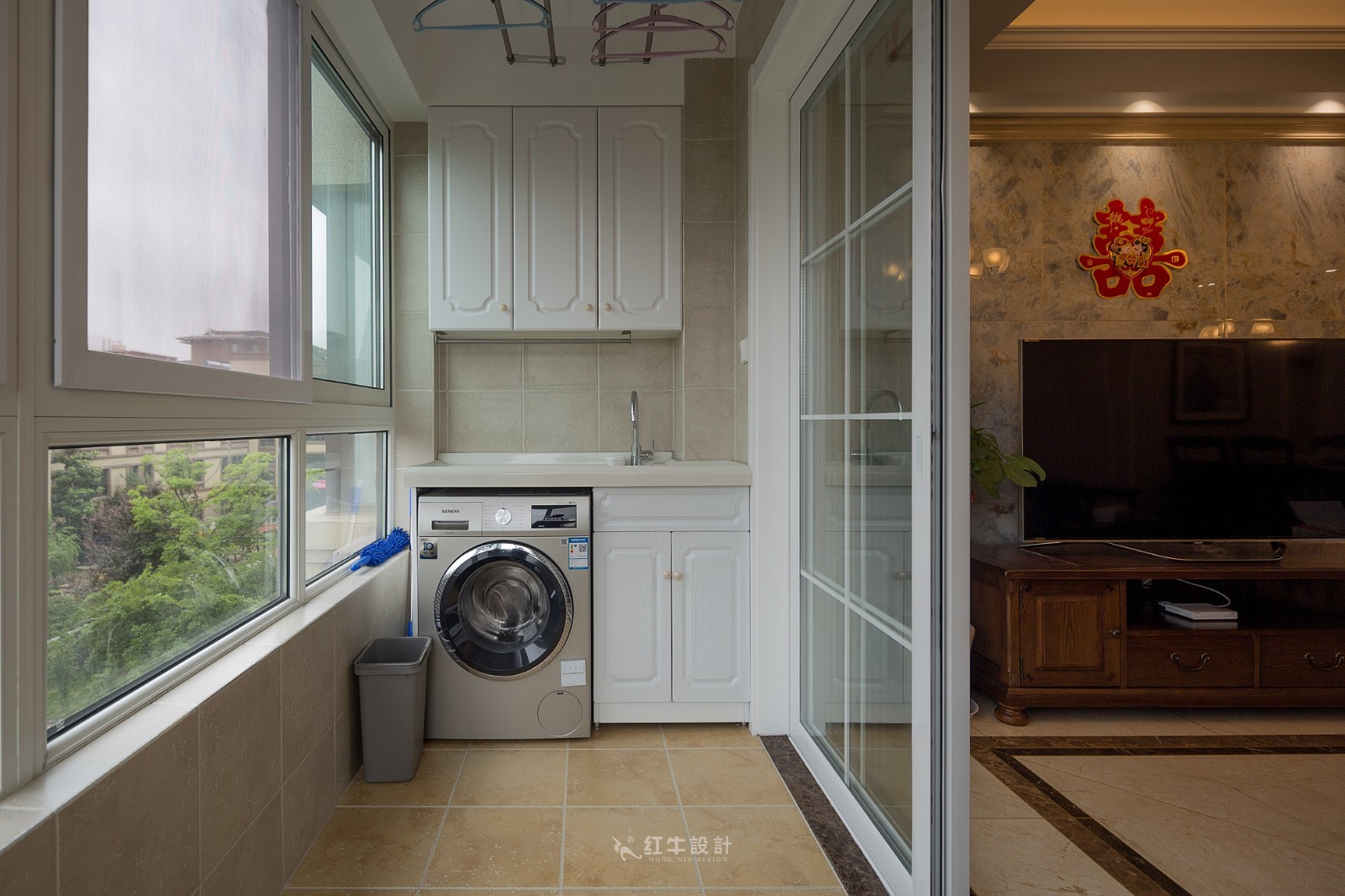 定制的陽臺柜,將陽臺空間利用最大化,底部放洗衣機(jī),上方做吊柜,增加了很多收納空間。裝上龍頭水槽更加方便使用,偶爾還可以在陽臺上清洗東西。