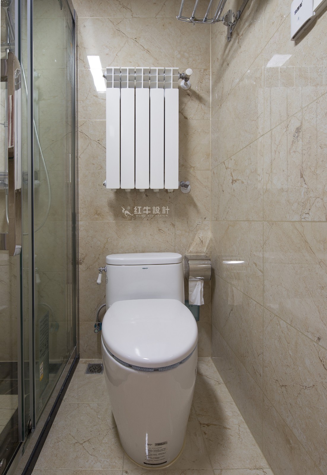 洗手臺被分離在外,提高了衛(wèi)生間的使用效率。衛(wèi)浴部分非常簡潔,以實(shí)用和功能性為主。