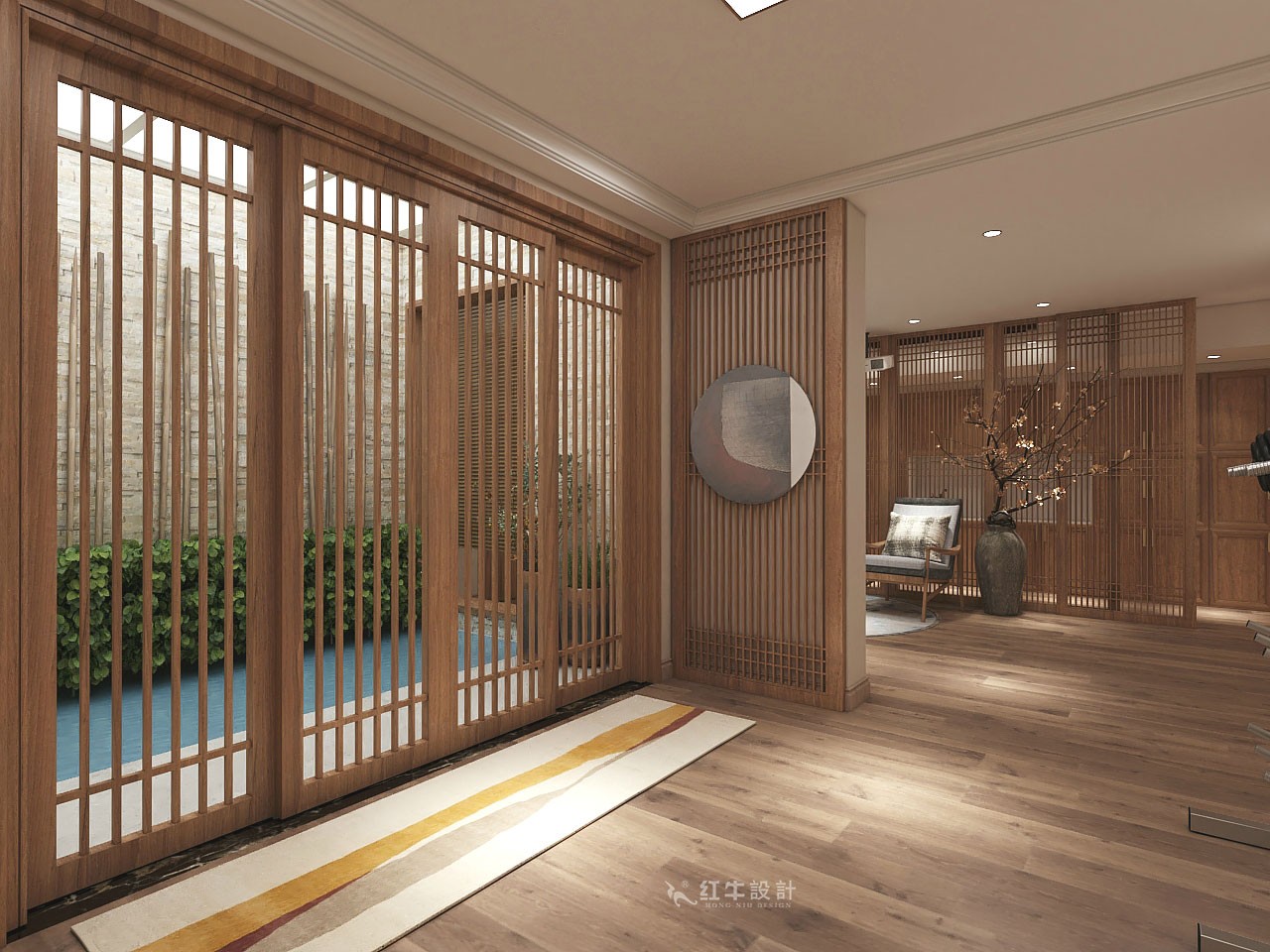 南京大華錦繡時(shí)代160㎡中式風(fēng)格--健身房+家庭影院,這才是向往的生活!04負(fù)一樓設(shè)計(jì)_入戶處健身空間