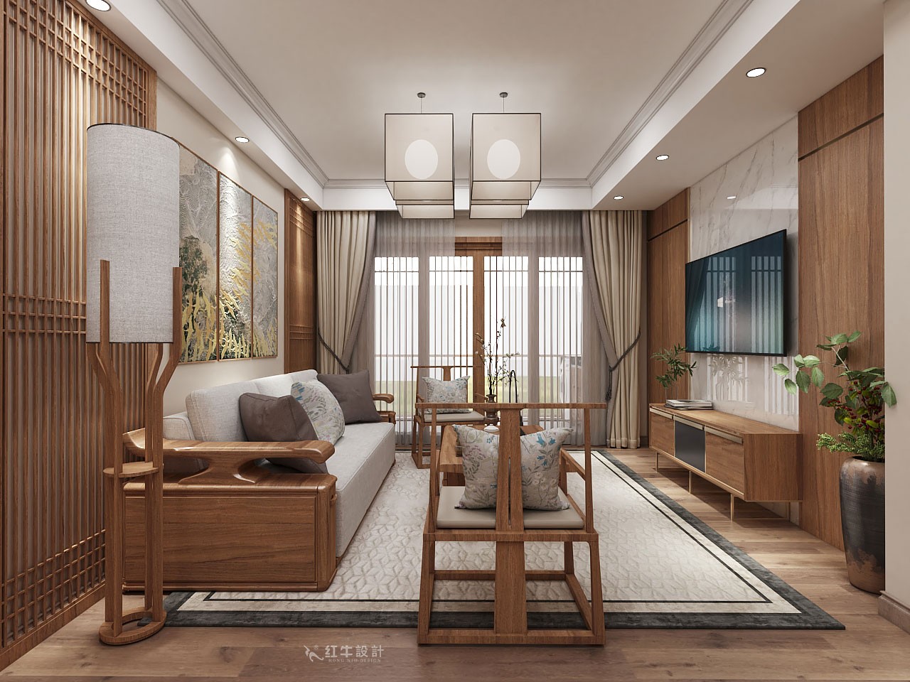 南京大華錦繡時(shí)代160㎡中式風(fēng)格--健身房+家庭影院,這才是向往的生活!07一樓設(shè)計(jì)_客廳