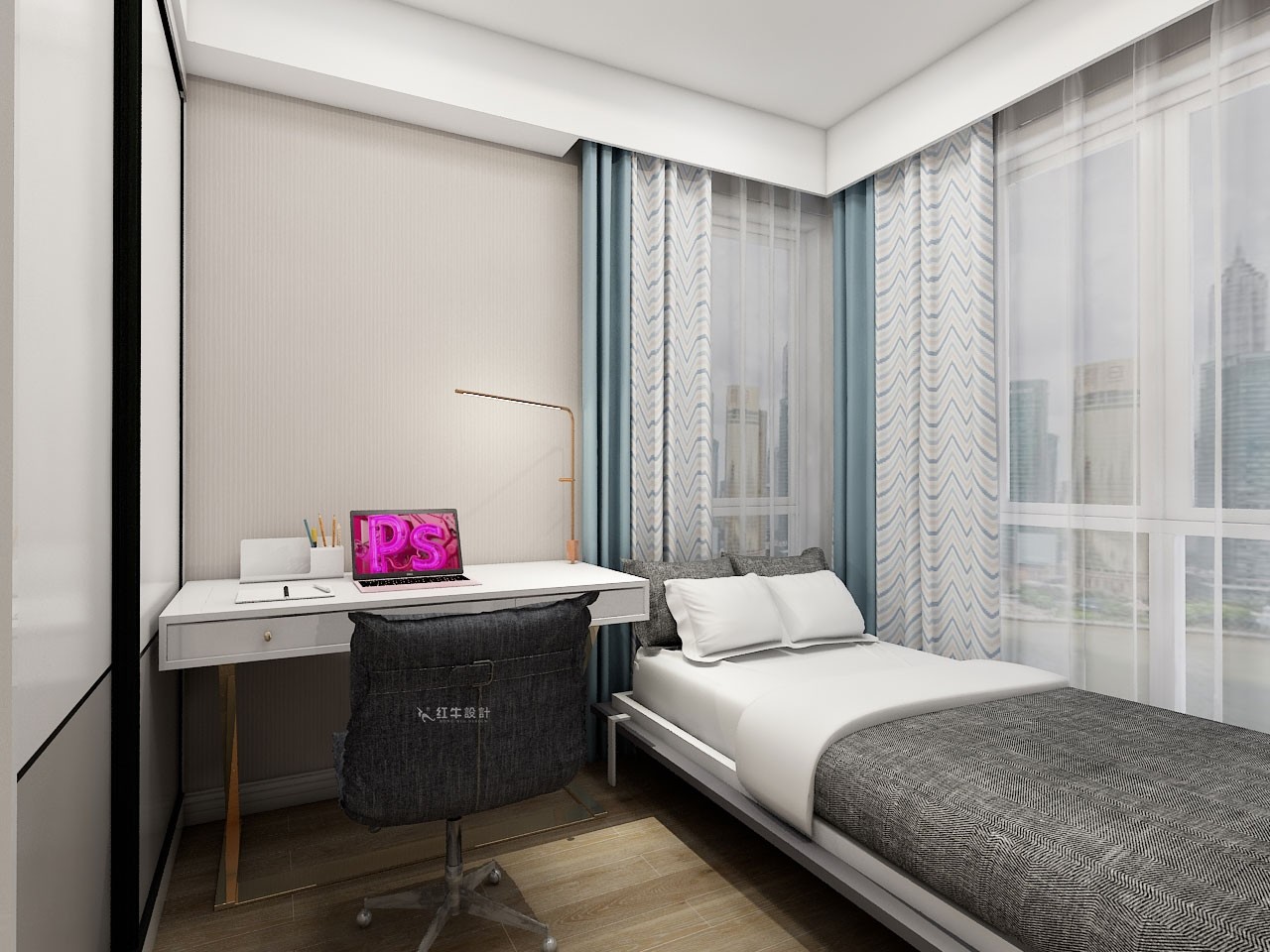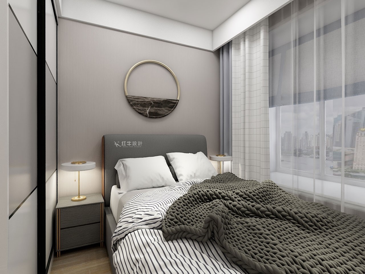 客餐廳色調(diào)清雅,休閑、隨性又不失精致,電視背景墻以冷色墻布滿鋪,色塊之間相互碰撞,強(qiáng)調(diào)功能性的同時(shí),給居住者一個(gè)慵懶、明快的起居環(huán)境。主臥次臥,依靠家具本身的線條感,搭配同樣風(fēng)格的裝飾畫,給人以休閑自在的視覺(jué)感受。