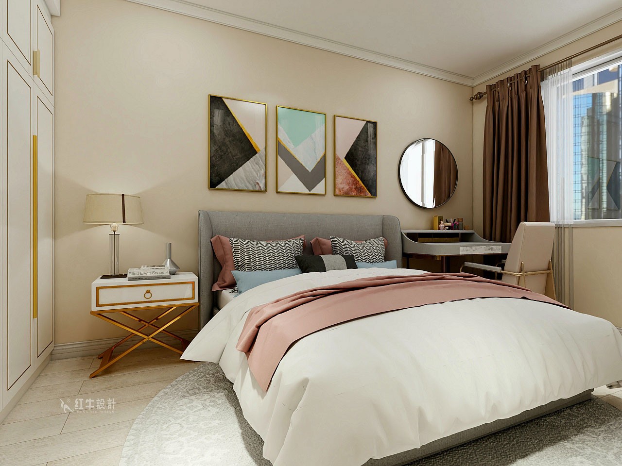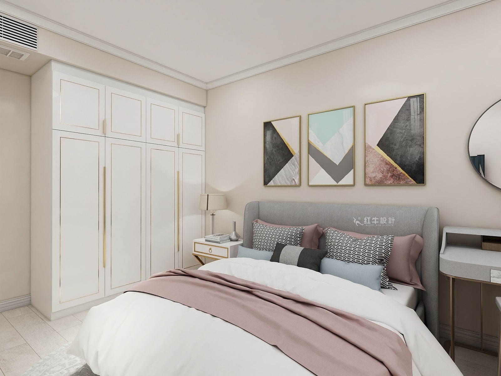本案的設計風格為輕奢風格,以象牙白為主色調,以淺色為主深色為輔。營造清新、溫馨浪漫的氛圍。