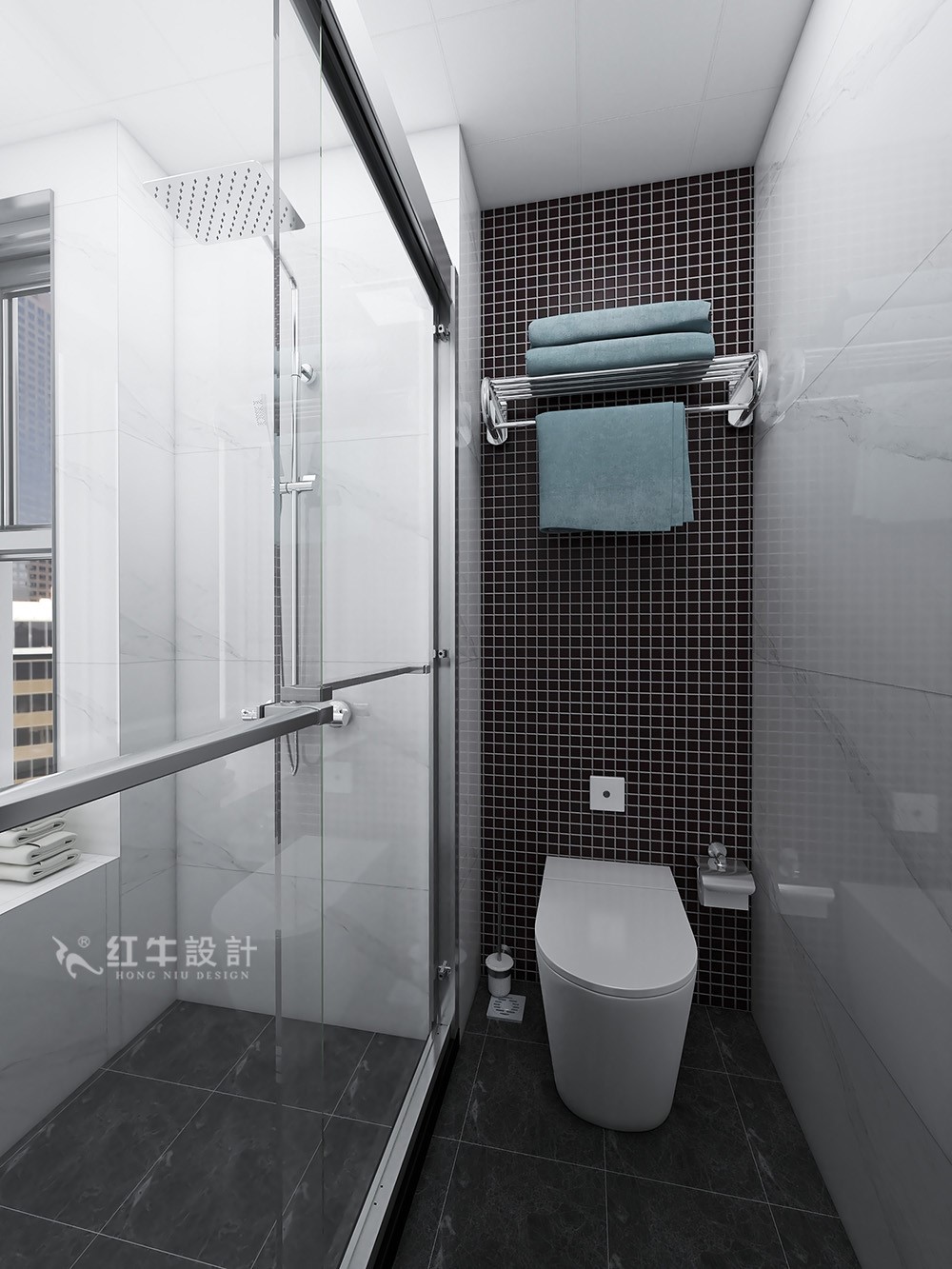 本案是為一家三口設(shè)計(jì),的風(fēng)格定義為現(xiàn)代輕奢,體現(xiàn)了低調(diào)奢華和簡(jiǎn)約時(shí)尚的相互融合,滿足了客戶對(duì)裝修簡(jiǎn)單但精致的需求,營(yíng)造出一種空間氛圍,體現(xiàn)客戶的生活品味。設(shè)計(jì)風(fēng)格定位時(shí),避免了現(xiàn)代過(guò)分簡(jiǎn)約的居家風(fēng)格,而是從現(xiàn)代風(fēng)格中提取了簡(jiǎn)約之美,使用金屬與黑白灰進(jìn)行表達(dá),選擇灰色的地磚,背景墻和墻面涂料,讓空間顯得融為一體且舒適,但深色的空間表達(dá)并不會(huì)感覺(jué)壓抑,因?yàn)樵陉愒O(shè)上融入了輕奢的元素,使用金屬配飾和金屬線條與灰色的空間相互呼應(yīng),為空間營(yíng)造出時(shí)尚摩登的韻味,演繹出現(xiàn)代精英人群的生活品質(zhì),即使經(jīng)歷出漫長(zhǎng)的時(shí)光依舊耐看。在家具的選擇上選擇了跳躍性的顏色,如土橘色和深藍(lán)色,這些跳躍的色彩與灰度的空間形成深淺的對(duì)比,讓空間充滿了設(shè)計(jì)感,并且富有層次感,舒適、黑白分明的創(chuàng)建了清晰的視覺(jué)框架,營(yíng)造出非凡的生活品味。