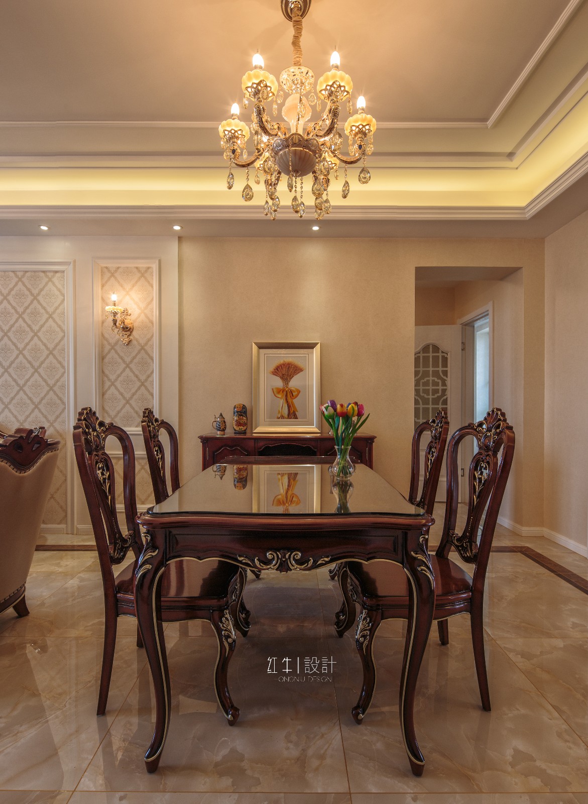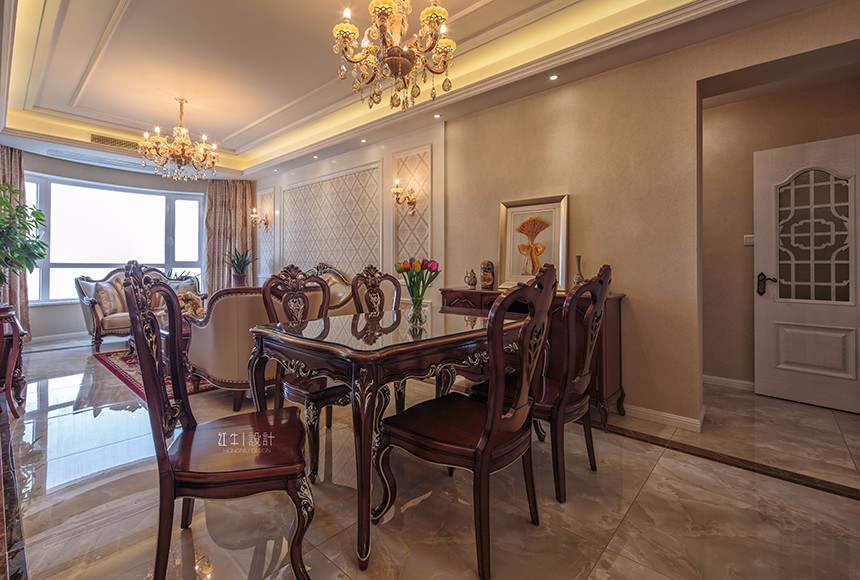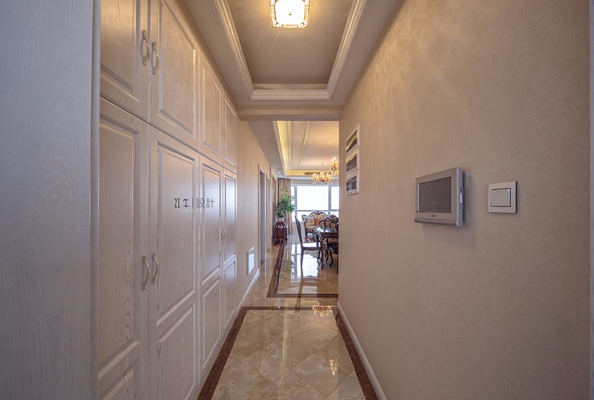 分享和交流是本案的精髓。初次溝通,此案是祖孫三代同住,業(yè)主為中年人,經(jīng)常去歐洲國家出差,對歐洲文化獨(dú)有情鐘,所以此案有效的利用空間、并用簡約明快的造型及色彩以突顯空間及功能的延續(xù)性,并融合歐式的裝飾元素及裝飾色彩。設(shè)計中的造型呼應(yīng)的技巧,頂面造型和地面材質(zhì)造型的相互呼應(yīng),沙發(fā)背景和電視背景造型的相互呼應(yīng),門廳造景和餐廳造景的相互呼應(yīng),運(yùn)用多組呼應(yīng)的設(shè)計技巧,像作文章的排比句,把整個空間貫穿起來,使得氛圍更加濃烈,整體性更加統(tǒng)一。打造出一個共享、時尚、典雅的居住空間。