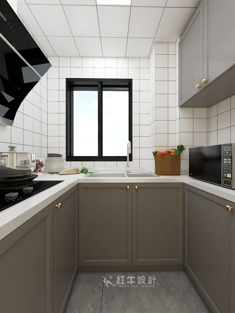 小白磚就像小白鞋一樣,堪稱“百搭”,本案廚房的墻面使用了小白磚,打造出既明亮又有趣的烹調(diào)空間。