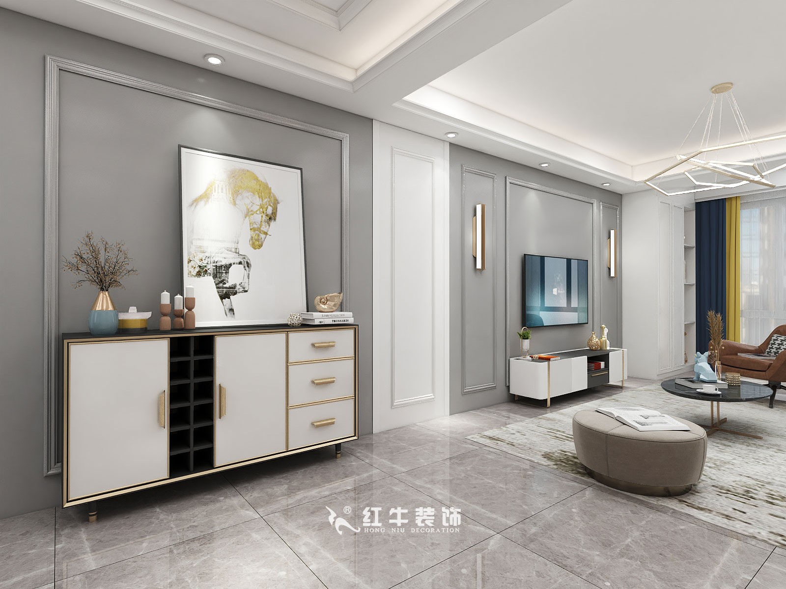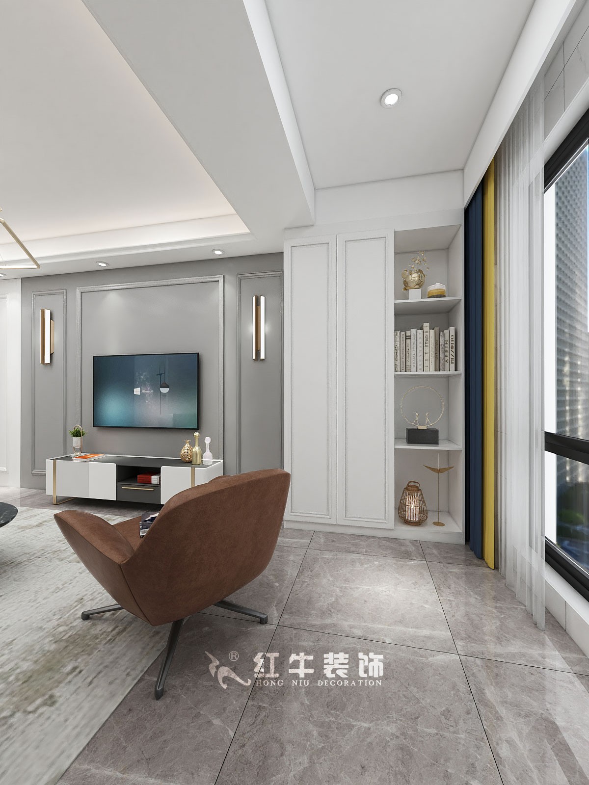 本案定義為現(xiàn)代風(fēng)格,在現(xiàn)代風(fēng)格中也穿插了一些北歐的元素,墻面不再使用傳統(tǒng)的白色,使用了一些顏色中性的深灰色,和顏色相對(duì)鮮艷軟裝相互呼應(yīng),使得空間色彩有對(duì)比性,這樣的視覺(jué)反差,使得效果整體提升一個(gè)品味,空間不單調(diào)且舒適。