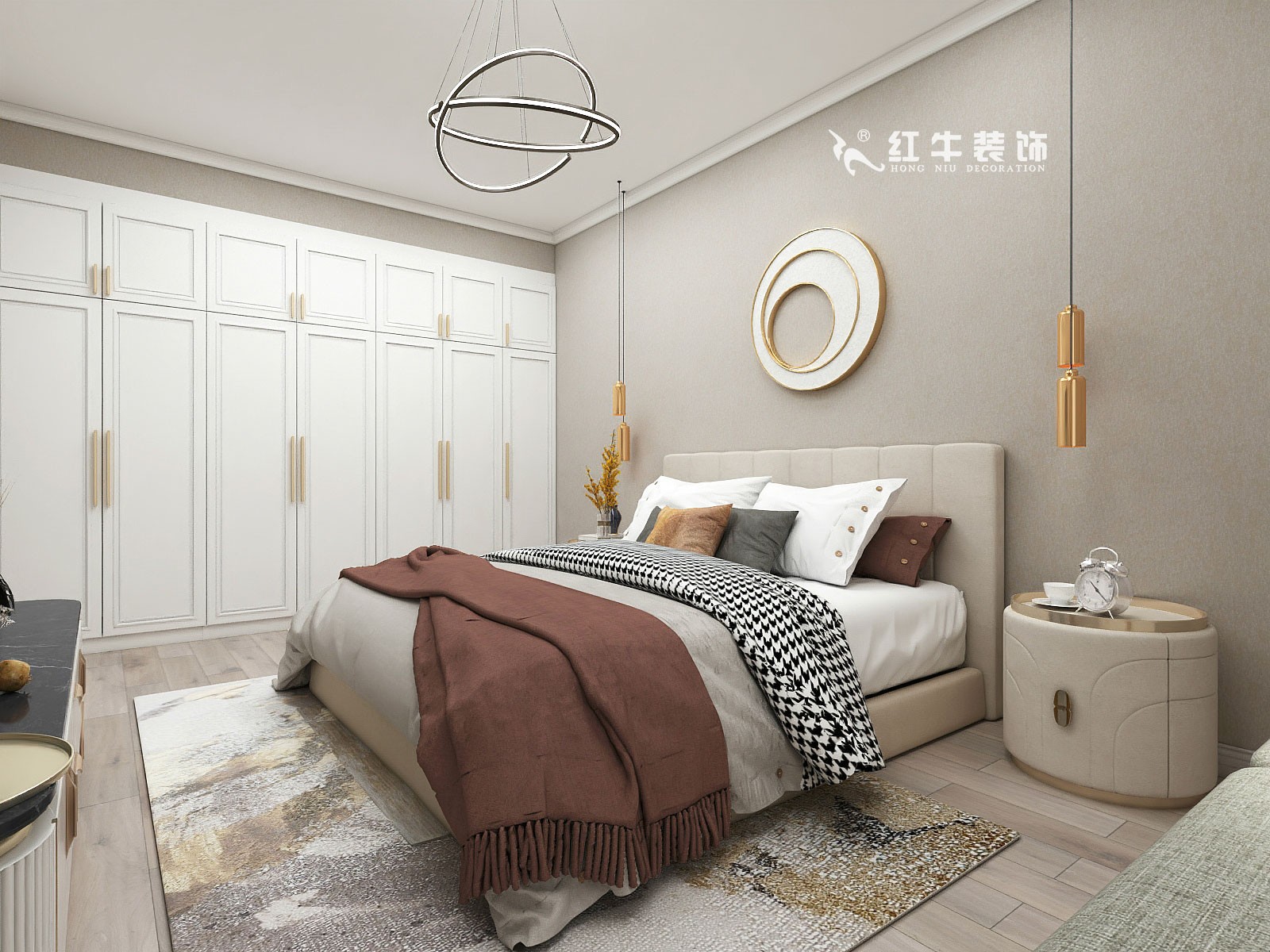 臥室做了一個(gè)空間層次的對(duì)稱,大方又得體。燈具、家具的造型奠定了臥室和諧圓潤(rùn)的基礎(chǔ),色調(diào)的選取則透露出典雅、秀美的氣息。