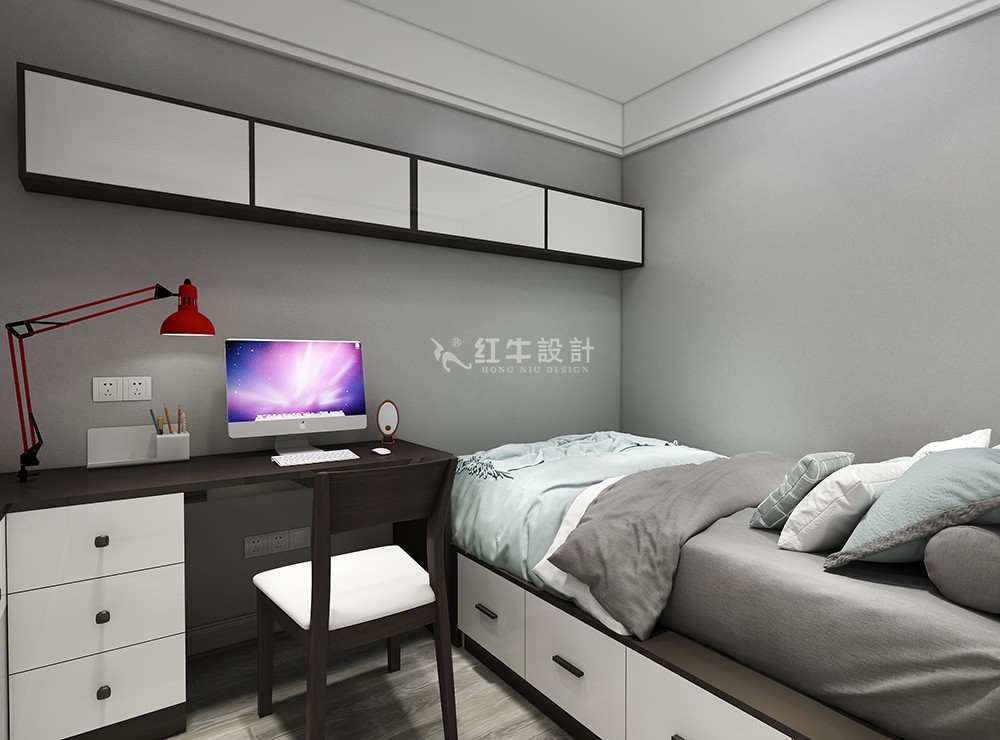 臥室的高分子衣柜門板搭配純白窗紗,白天折射進(jìn)室內(nèi)的光線給人以治愈感。功能間作為辦公娛樂空間,榻榻米連接書桌旁轉(zhuǎn)角的飄窗給了原本不大的空間一個視覺的開放性,而L型的定制空間大方向,使得小書房絲毫不會讓人覺得緊湊。