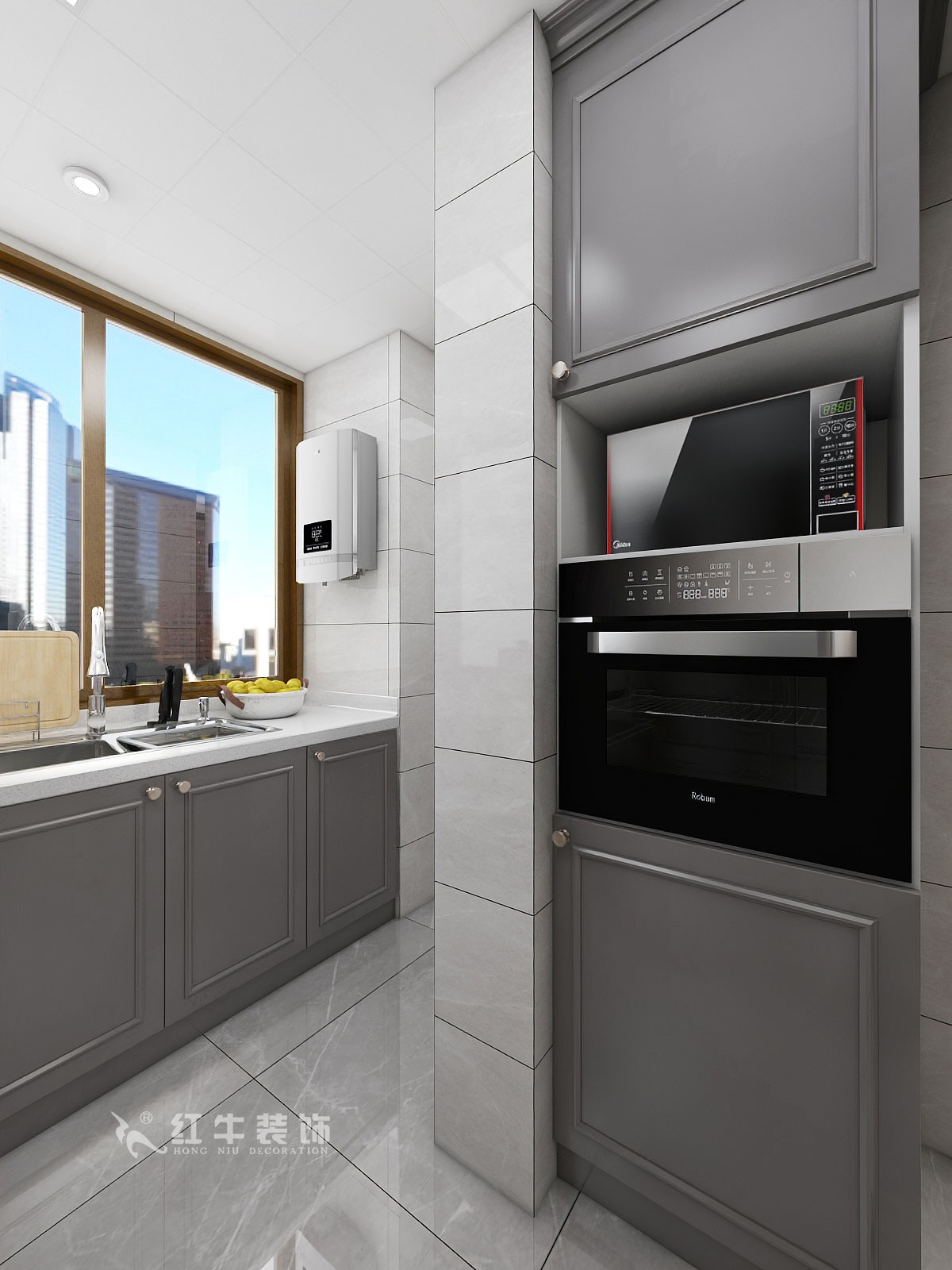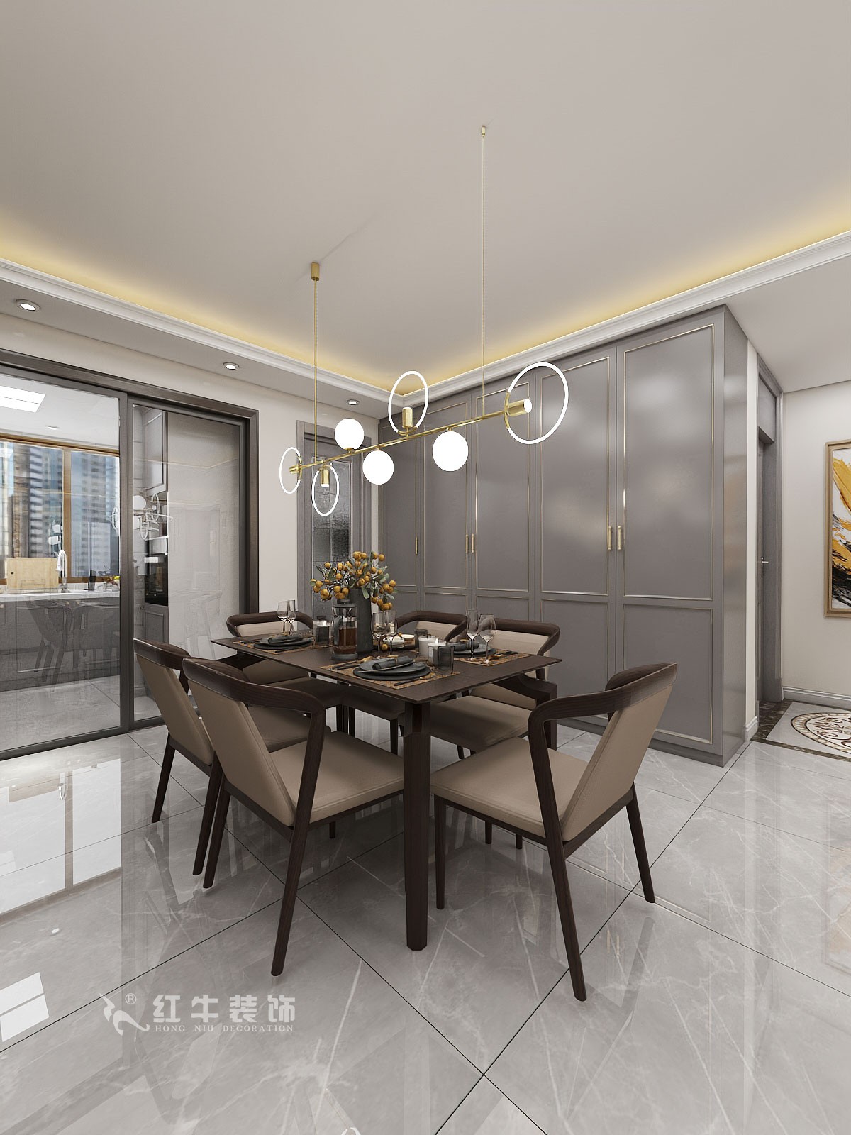 在整個(gè)房屋平面布置上餐廳區(qū)域做了很大大的改動(dòng),將入戶的的小儲(chǔ)物間和餐廳的小儲(chǔ)物間全部拿掉,還餐廳一片整潔;把原有的廚房空間往后壓縮,原來閑置的后陽臺(tái)納入廚房里面,這樣調(diào)整下來,整個(gè)餐廳很干凈整潔又增加了收納空間。輕奢是一種優(yōu)雅的生活態(tài)度,包涵奢華的氣質(zhì)內(nèi)涵;整體裝修的硬裝部分以流行灰色為主色,在優(yōu)雅之上稍加的金屬線條裝飾,形成了自然而極致的家居風(fēng)格。