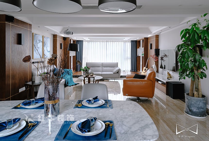 【實景案例】余瑋_棲園-200㎡-輕奢風(fēng)格_4室3廳3衛(wèi)(新房裝修)_全包35萬00_02一樓是日常休閑的活動區(qū)域